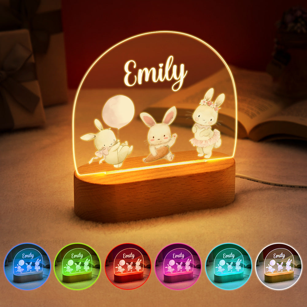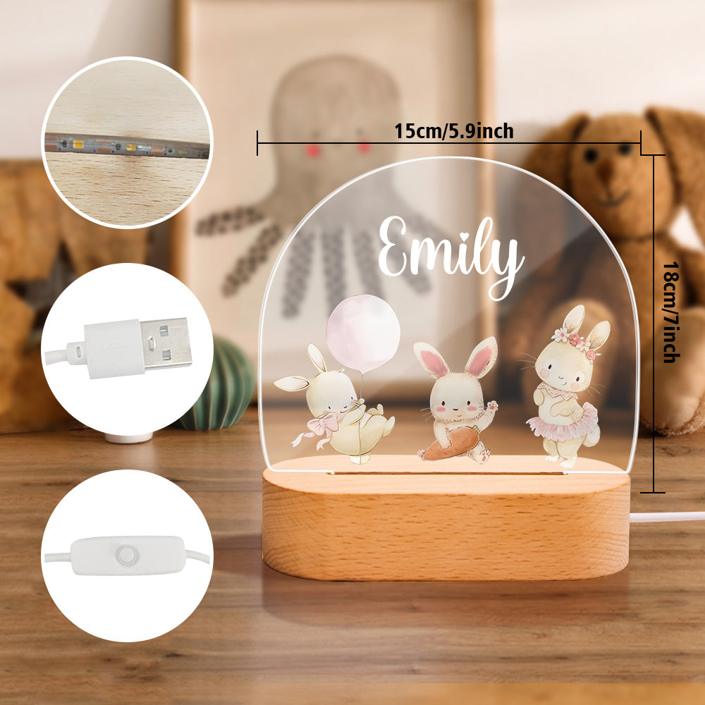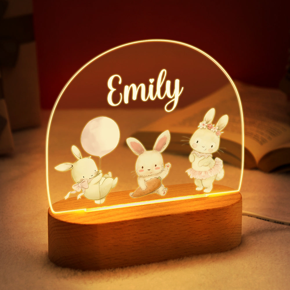 Nom Personnalisé Mignon Lapin Veilleuse Nom Personnalisé Chambre De Bébé Lampe Cadeau Pour Les Enfants