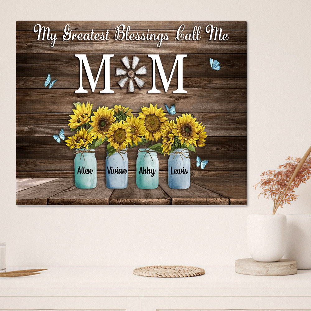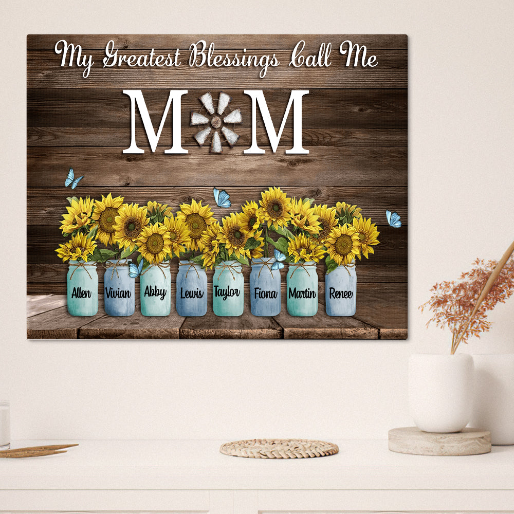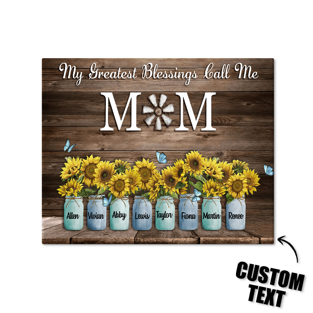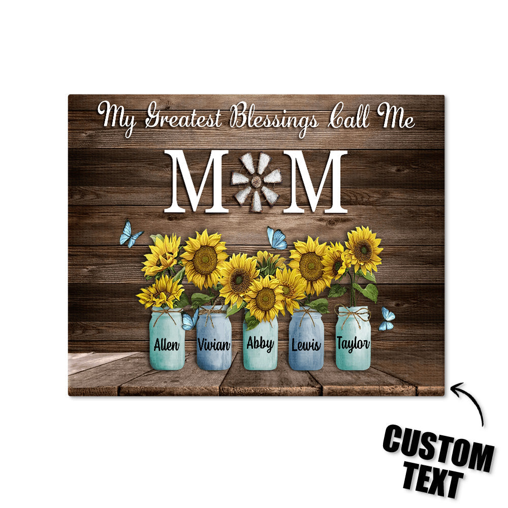 Toile De Tournesols Avec Nom Personnalisé, Mes Plus Grandes Bénédictions, Appelez-moi Maman, Toile D'art Mural, Cadeaux De Fête Des Mères