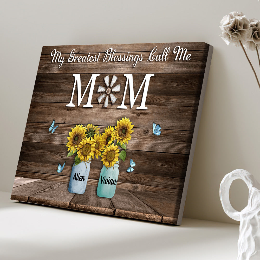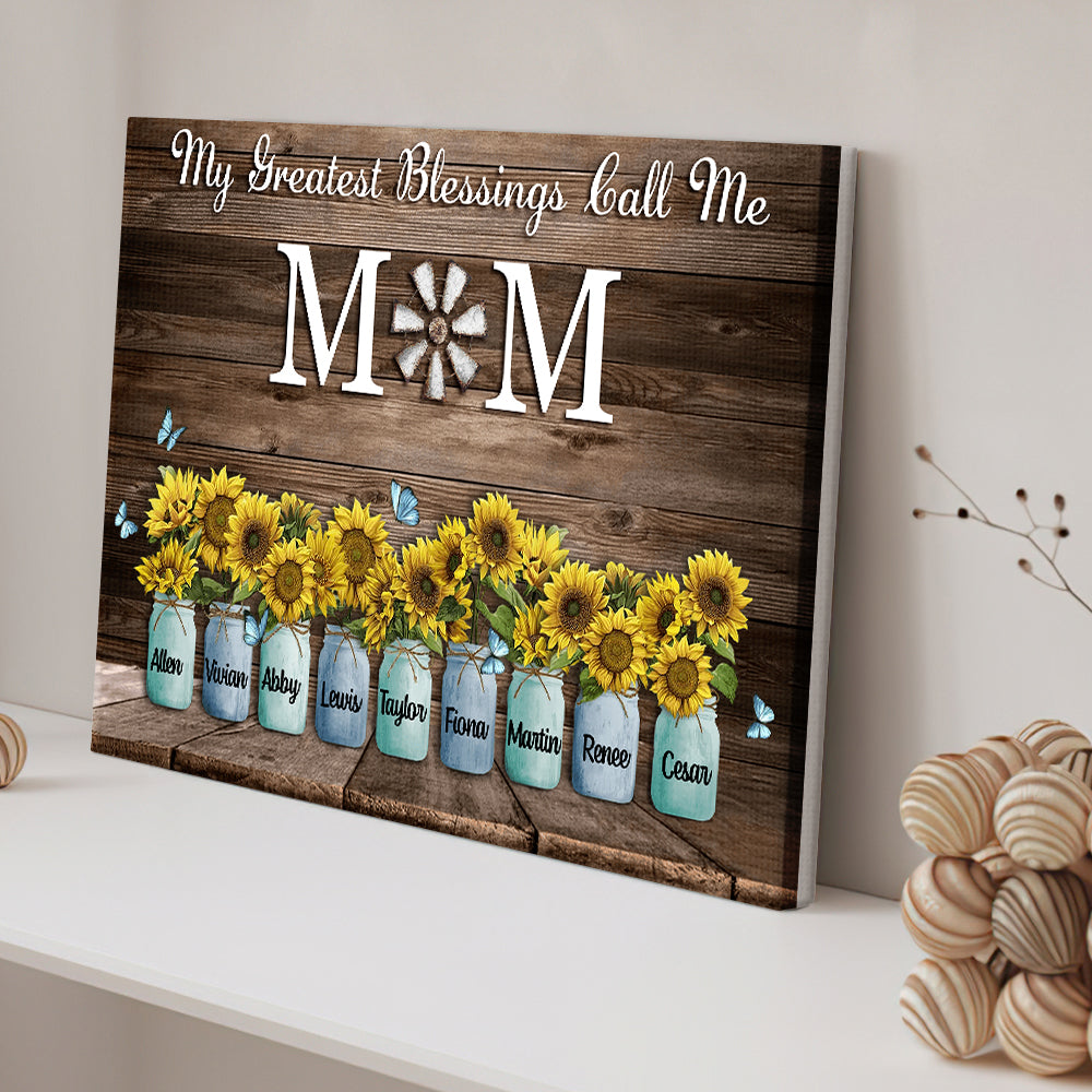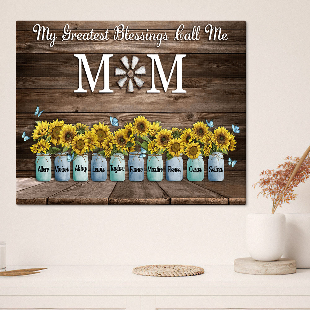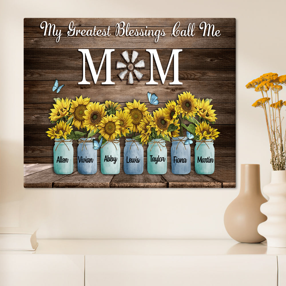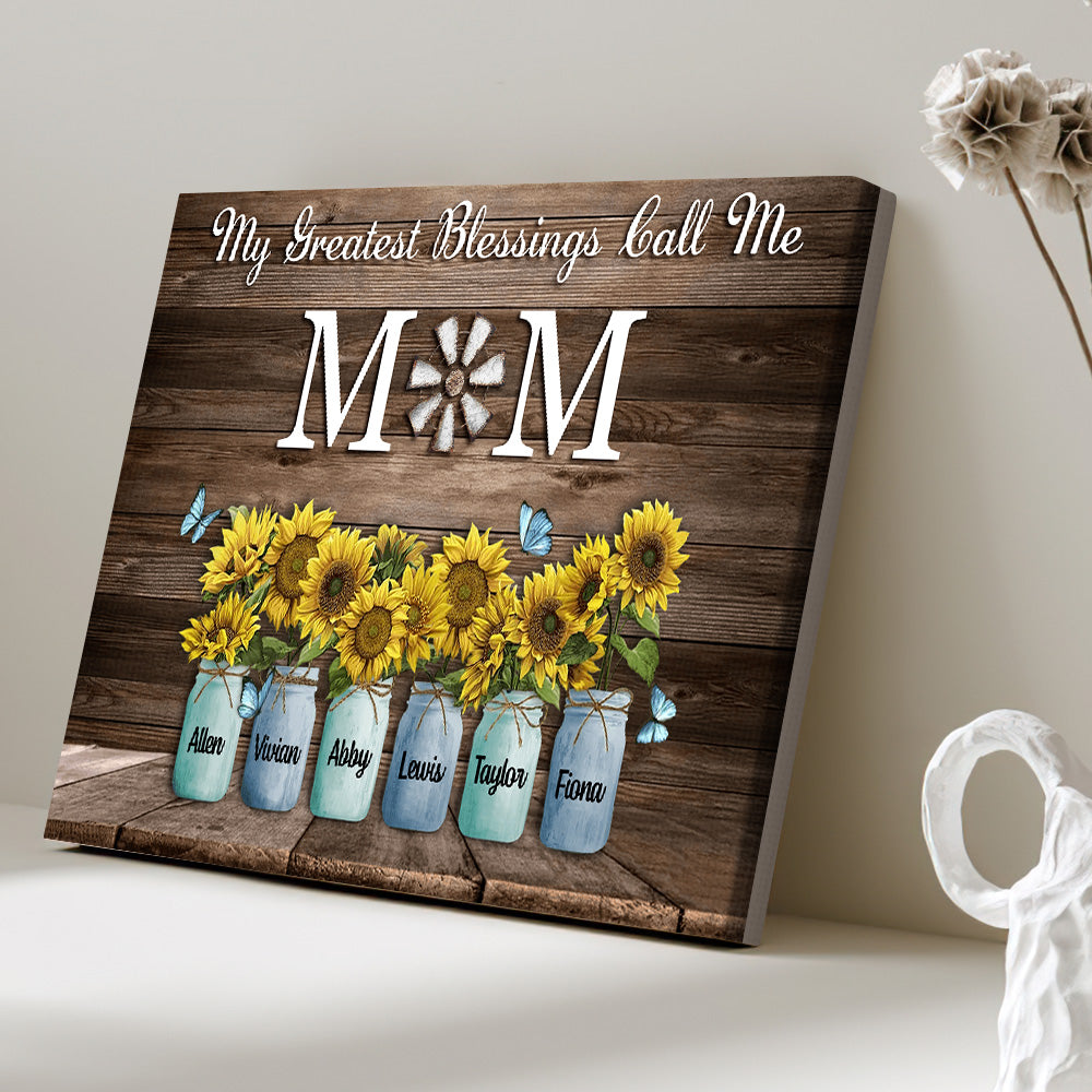 Toile De Tournesols Avec Nom Personnalisé, Mes Plus Grandes Bénédictions, Appelez-moi Maman, Toile D'art Mural, Cadeaux De Fête Des Mères