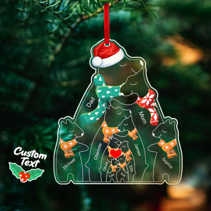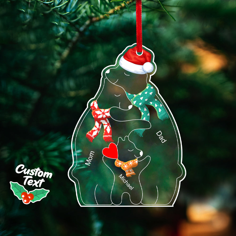 Noms Personnalisés Ours De Noël Famille Acrylique Ornement Personnalisé Souvenir De Noël Ornement Cadeau De Noël Décor