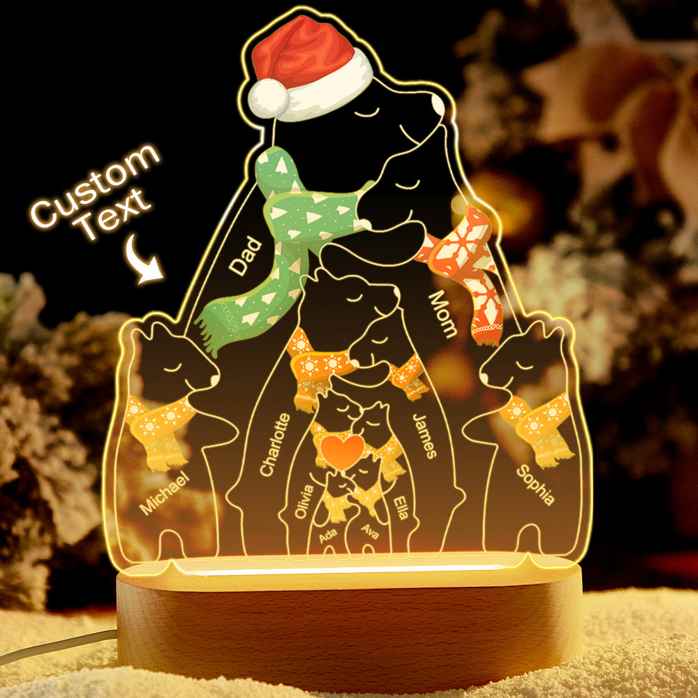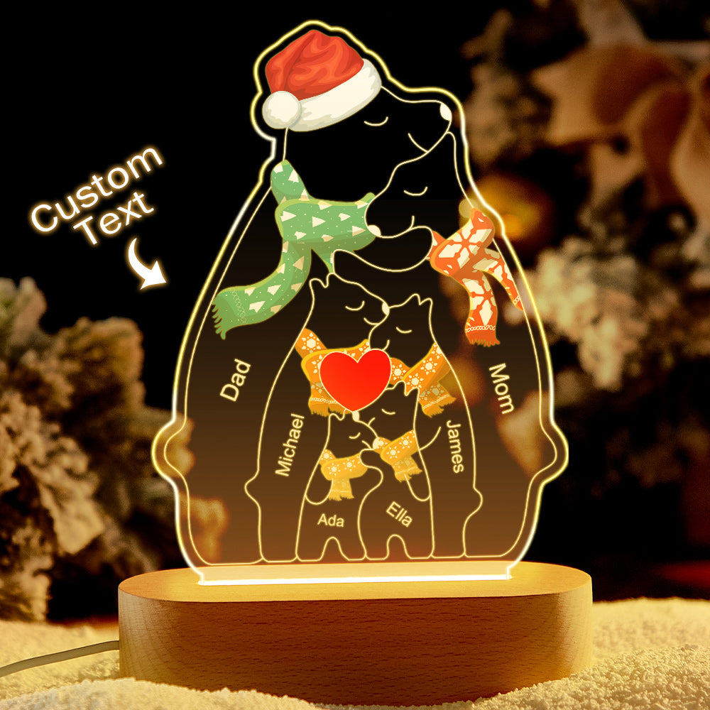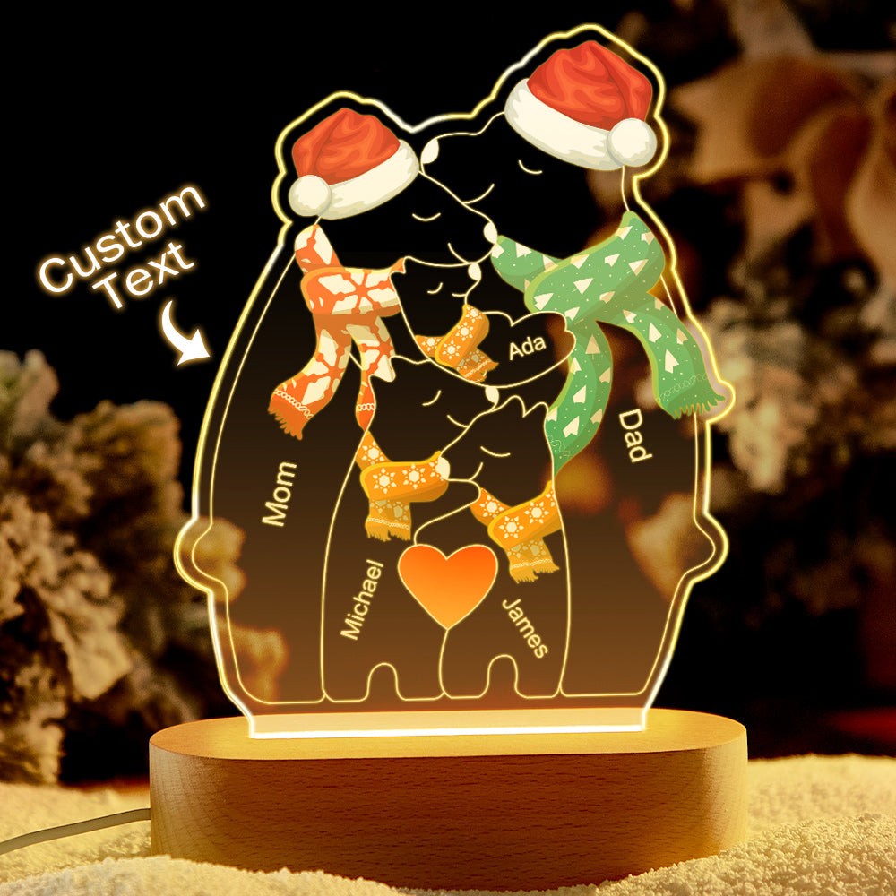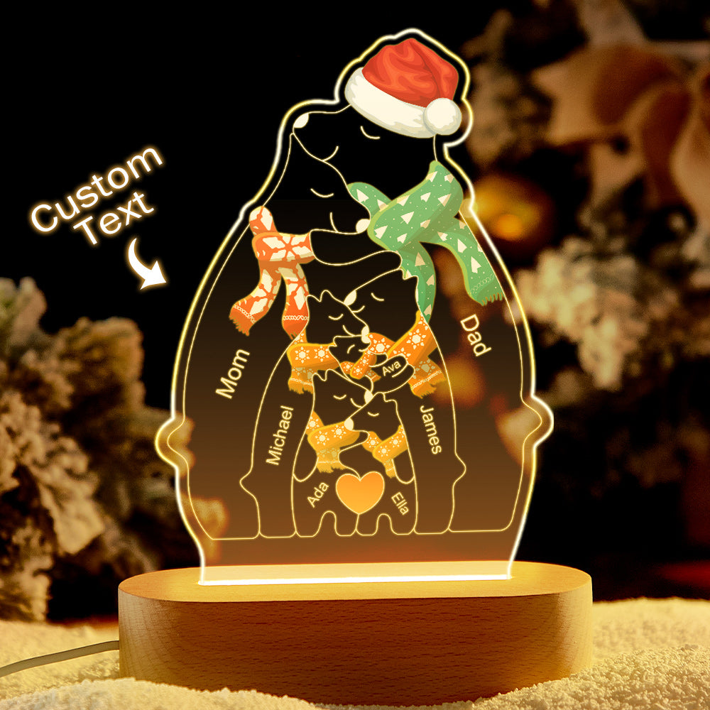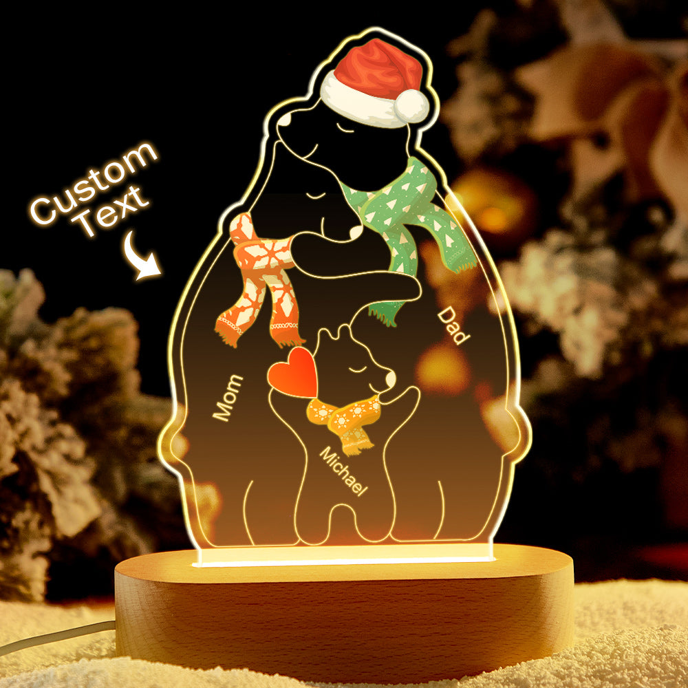 Lampe Acrylique En Forme D'ours Chaud De Noël Avec Noms Personnalisés, Veilleuse Personnalisée, Meilleur Cadeau De Noël