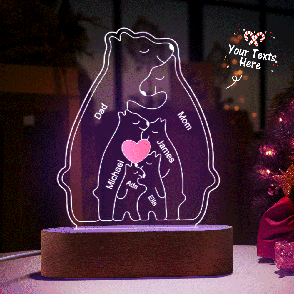 Lampe En Acrylique Avec Noms Personnalisés, Famille D'ours Chauds, Veilleuse Personnalisée, Meilleur Cadeau De Noël