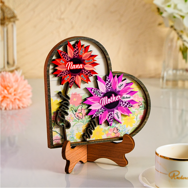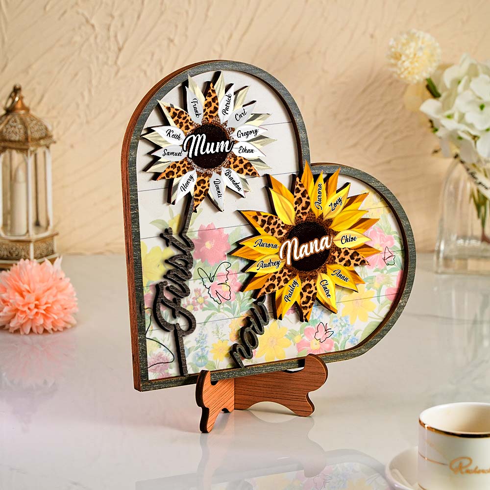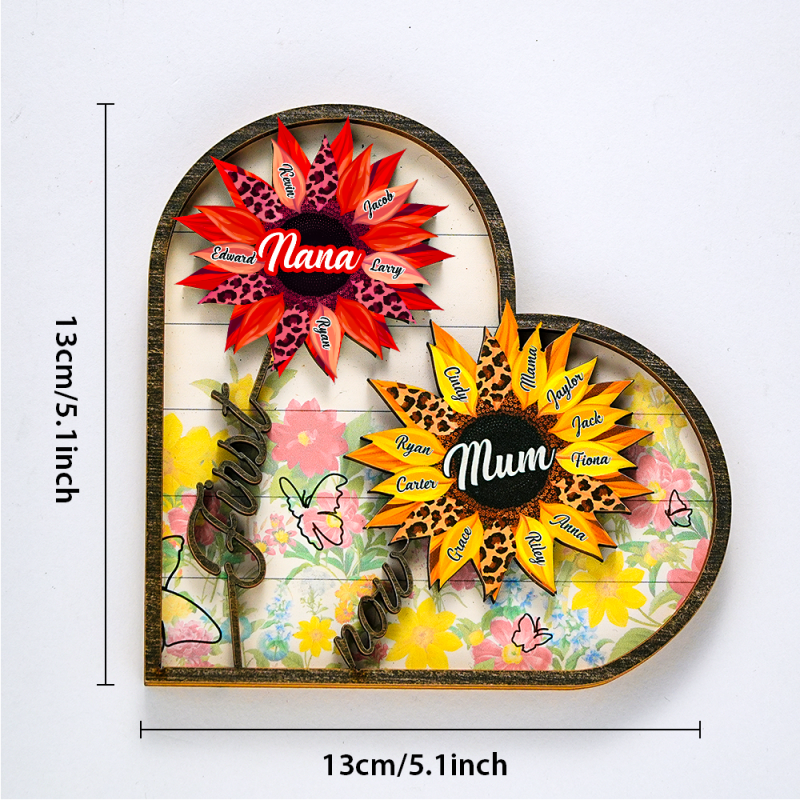 Plaque En Bois Avec Noms Personnalisés, Cœur Tournesol, Cadeaux Pour Maman, Grand-mère, Décoration De Maison Familiale
