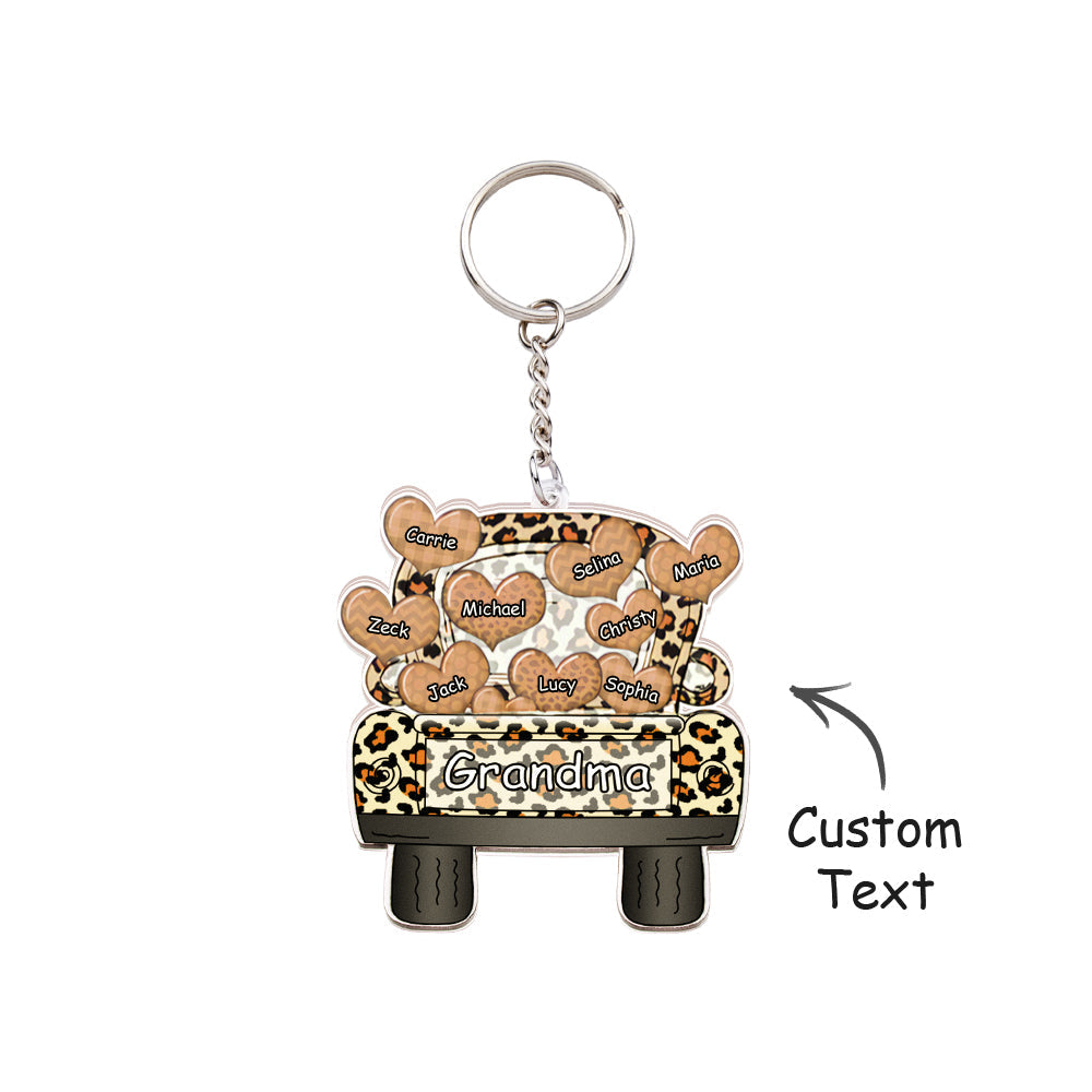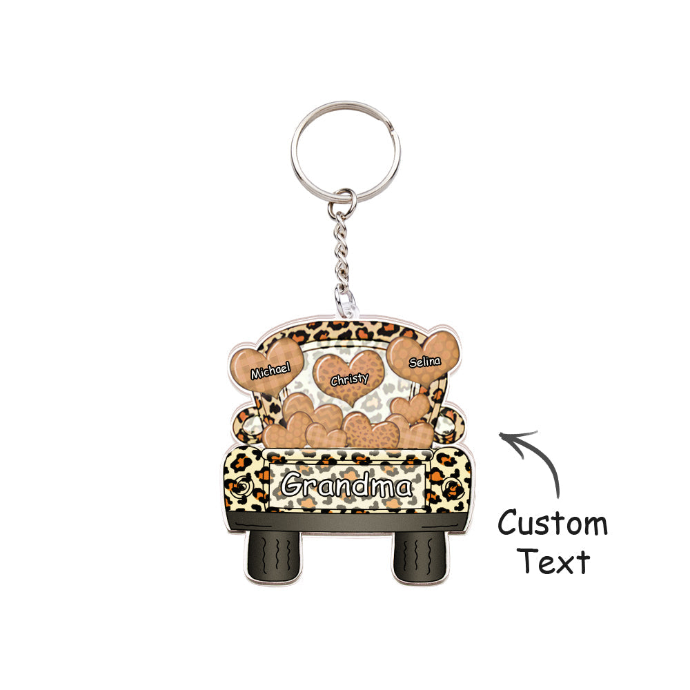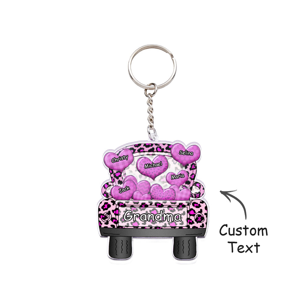 Surnom Personnalisé Camion Chargement Coeur Acrylique Porte-clés Cadeau De Noël Décor Cadeau Grand-mère Nana Papa
