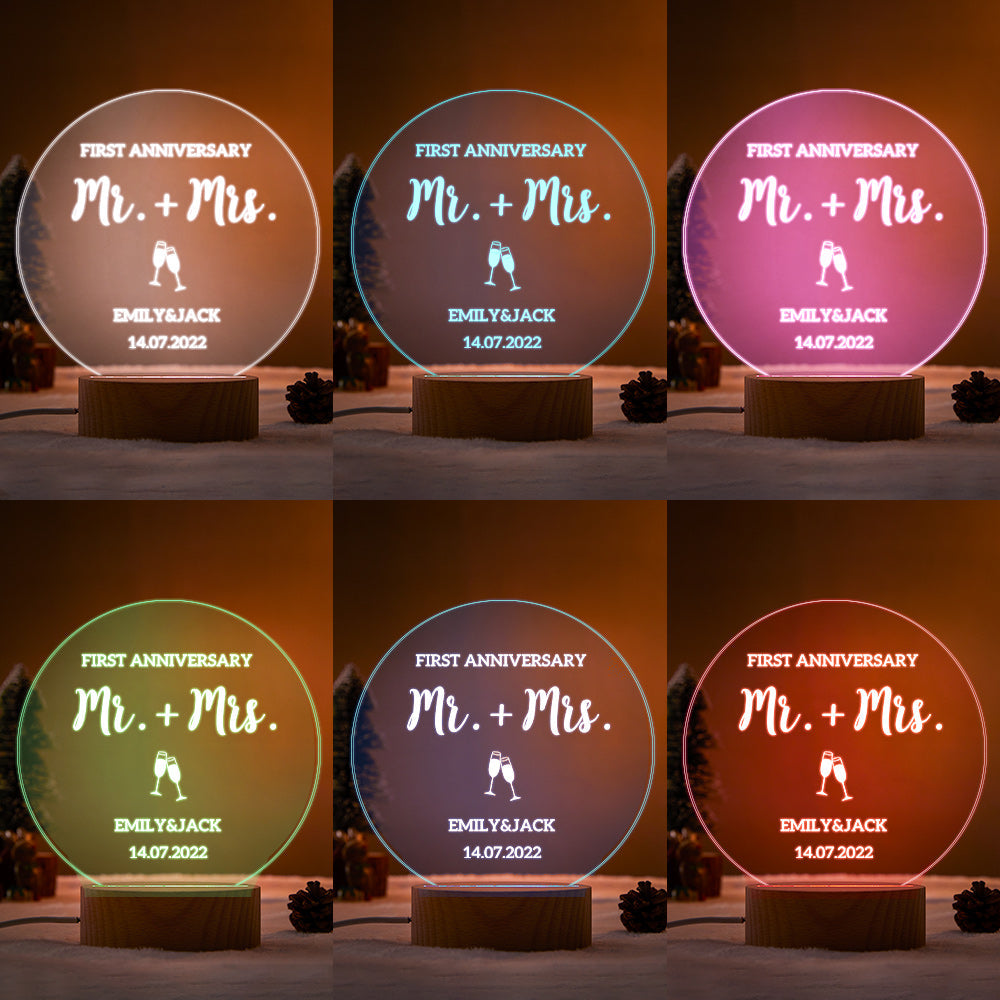 Lampe De Nom Gravée De Veilleuse Personnalisée Pour Les Cadeaux D'anniversaire-7 Couleurs