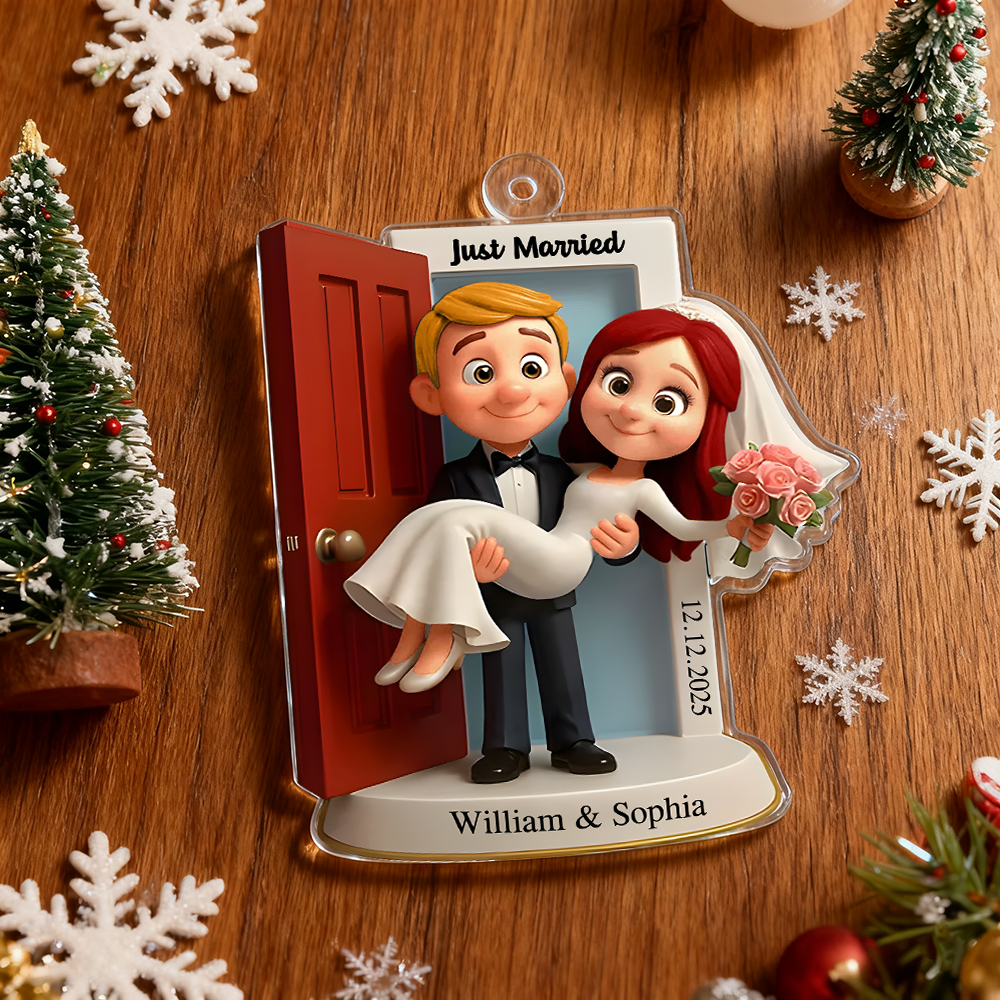 Ornement Personnalisé « notre Premier Noël De Jeunes Mariés » - Seuil De Mariage Personnalisé