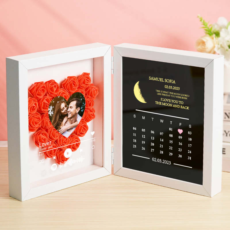 Boîte À Fleurs Avec Photo Personnalisée, Cadre Avec Code Musical Personnalisé, Calendrier Des Phases De Lune, Cadeau Pour Elle