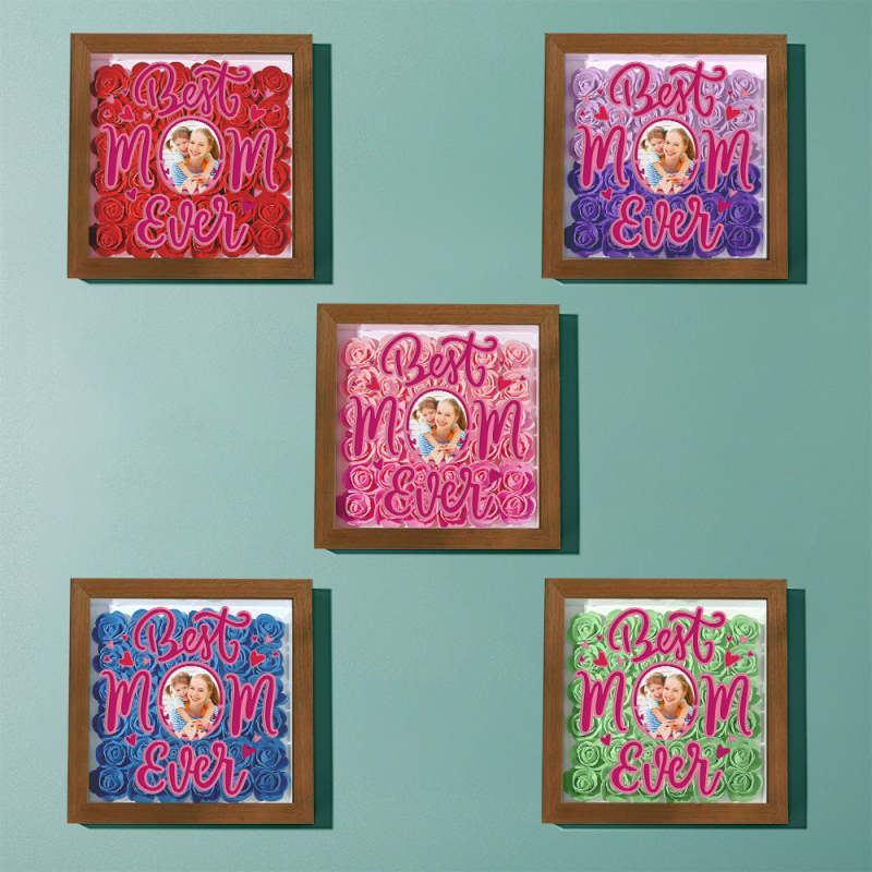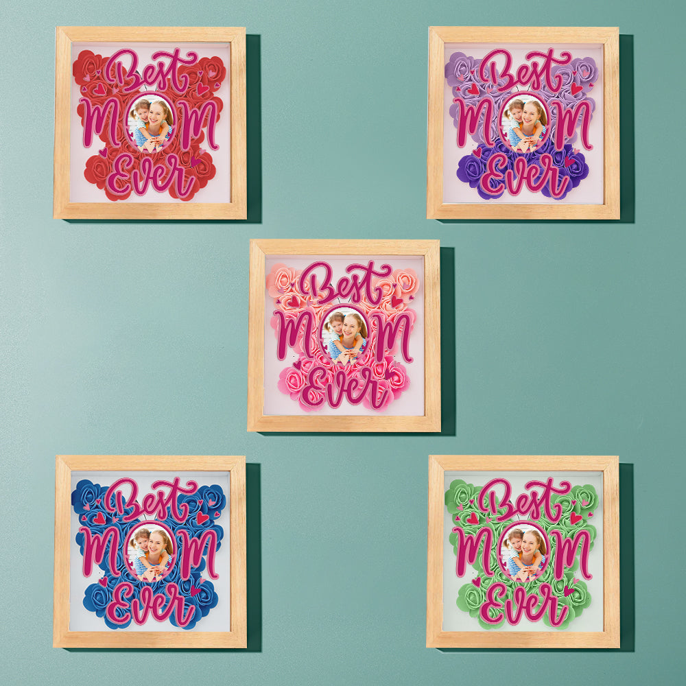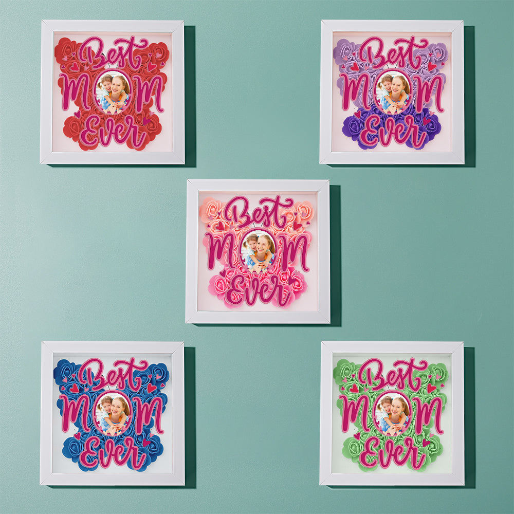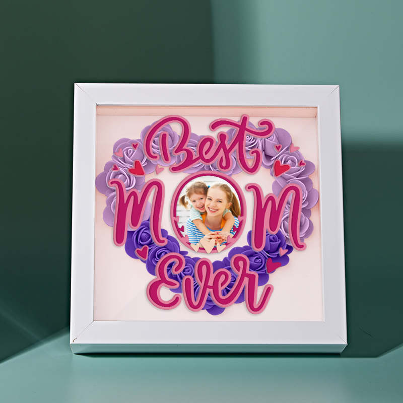 Cadre De Boîte D'ombre De Fleurs Photo Personnalisé, Cadeau De Fête Des Mères