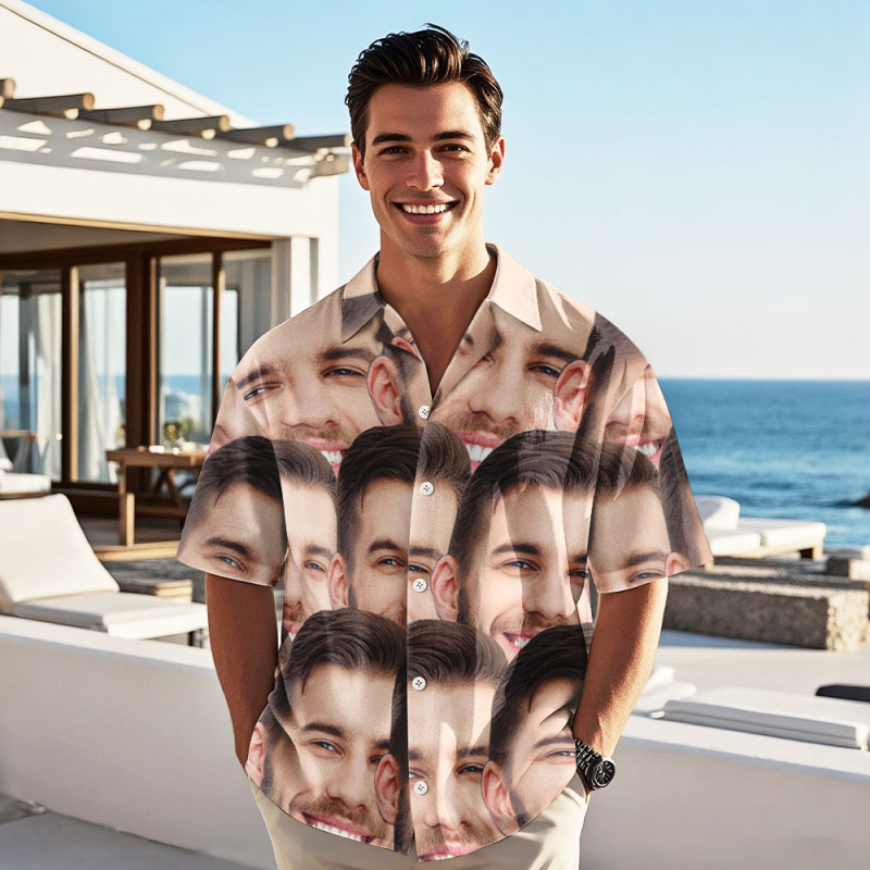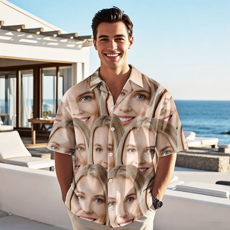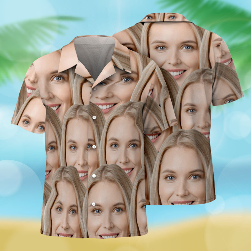 Insérez votre photo sur une chemise hawaïenne personnalisée. Un cadeau idéal.