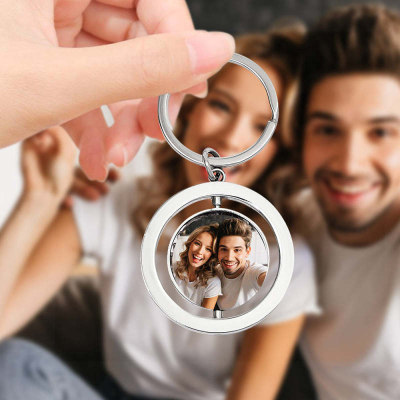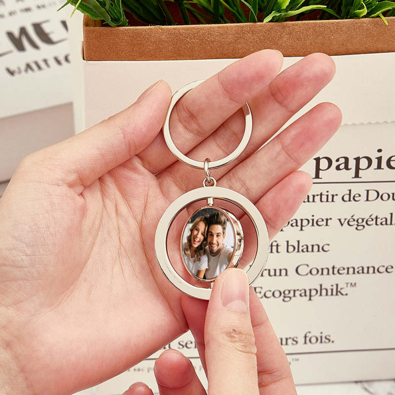 Porte-clés Photo Personnalisé, Rotatif, Double Face, Cadeaux Pour Amoureux