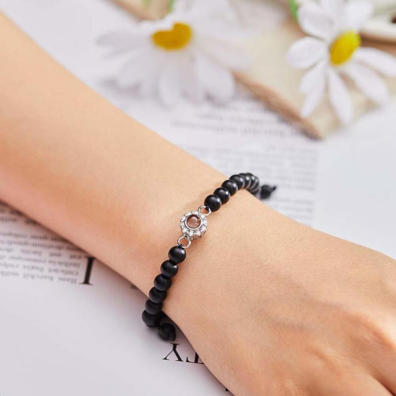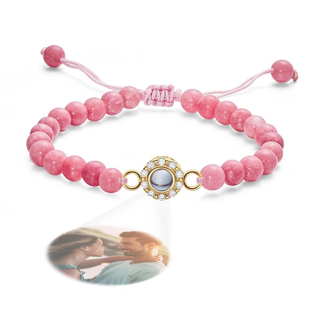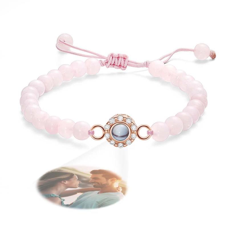 Bracelet Personnalisé De Perles De Projection De Photo Avec Des Strass Doux Cadeau Pour Elle