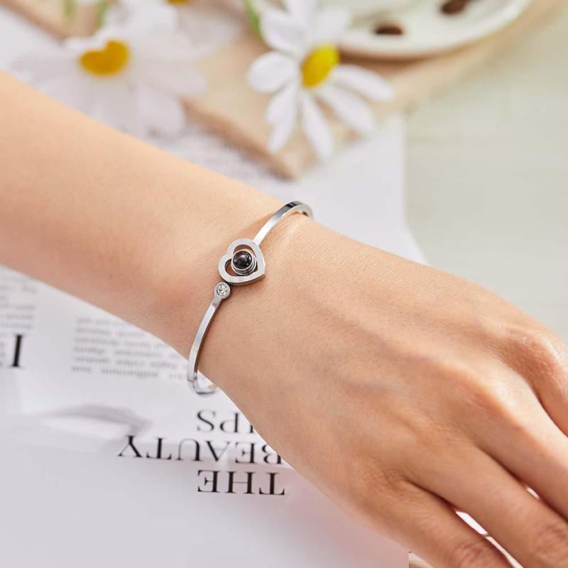 Bracelet En Forme De Coeur Avec Projection De Photo Personnalisée Bracelet Rond À Réglage Libre Pour Elle