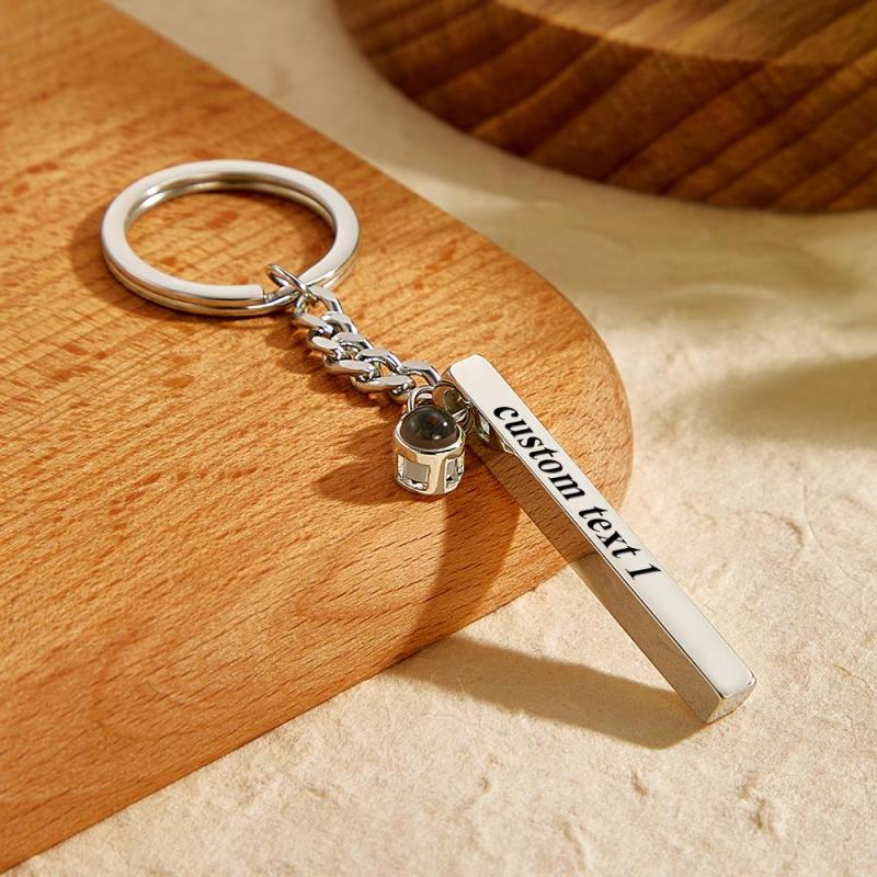 Porte-clés De Projection De Photo Personnalisé Gravé Pendentif Cube Vertical Cadeaux Pour Lui
