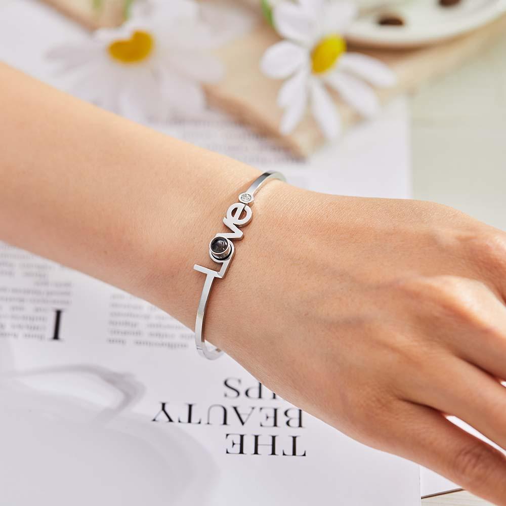 Bracelet D'amour De Projection De Photo Personnalisé Bracelet Rond D'ajustement Gratuit Pour Elle
