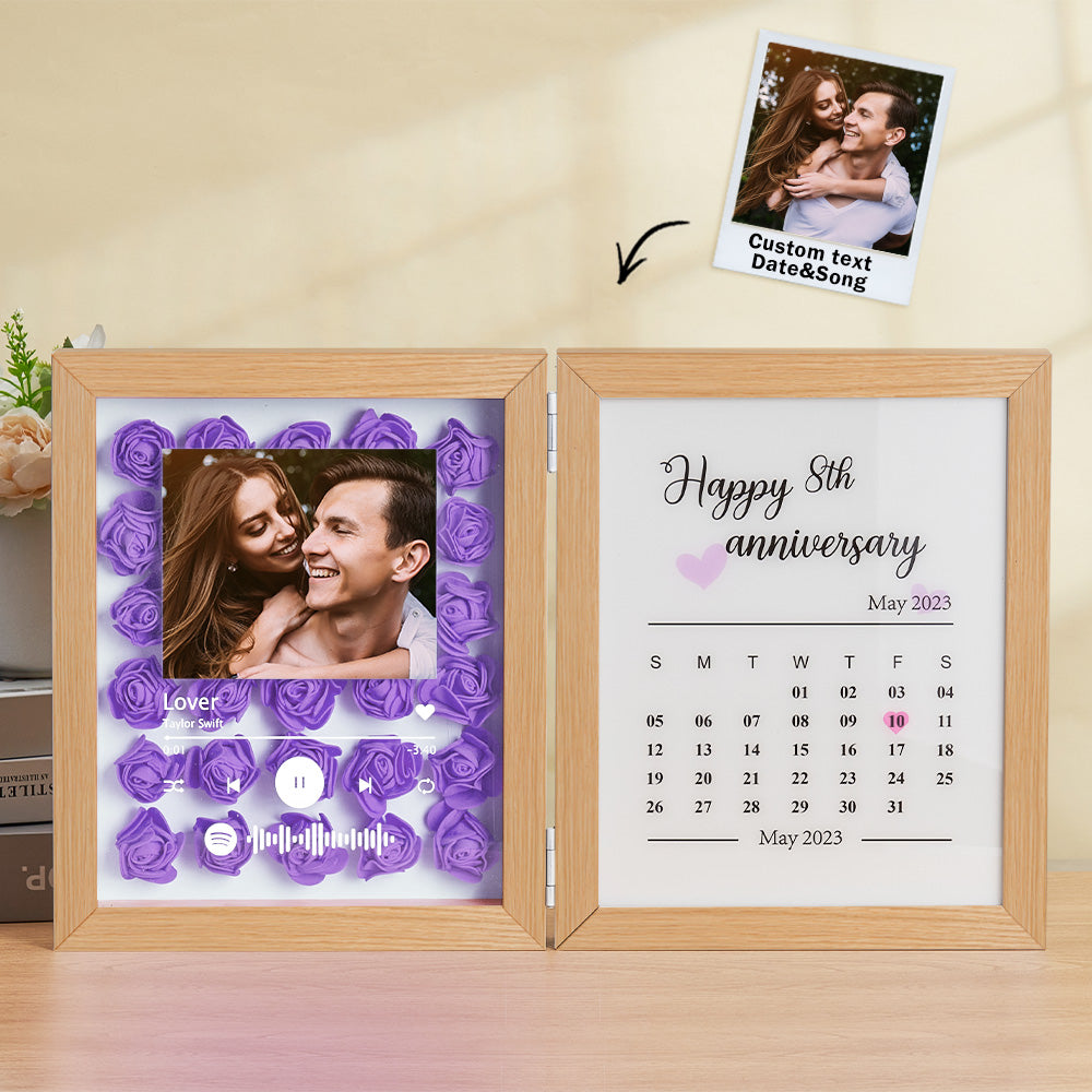 Photo Personnalisée Fleur De Rose, Cadre Pliable, Code Musical Personnalisé, Cadeau D'anniversaire Pour Couple