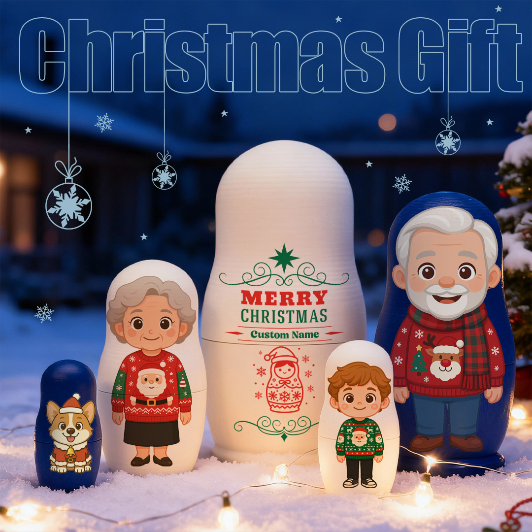 Poupée Russe Personnalisée Avec Portrait Et Texte, Photo Personnalisée, Portrait De Famille Style Dessin Animé, Cadeau Photo De Noël