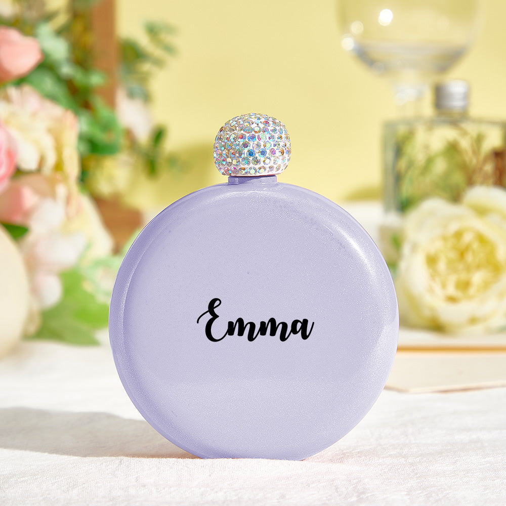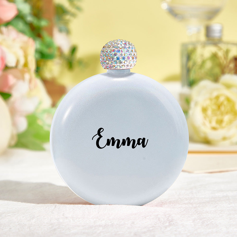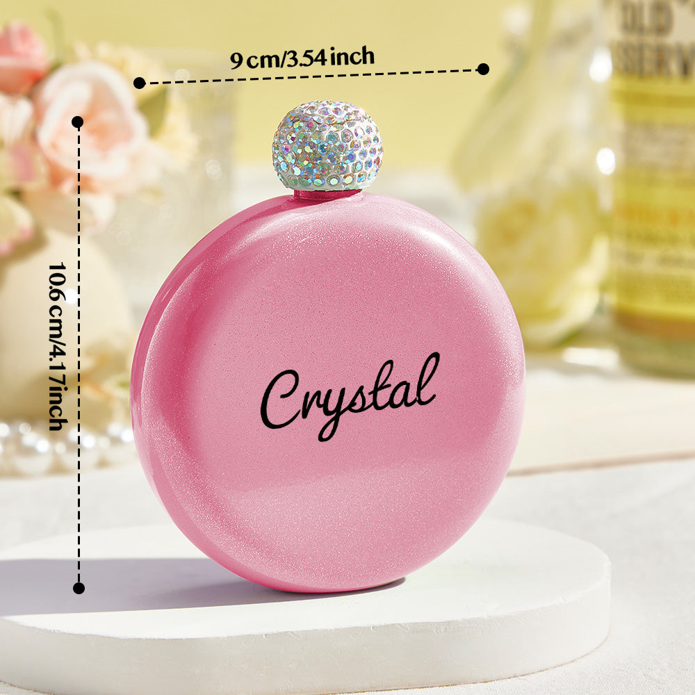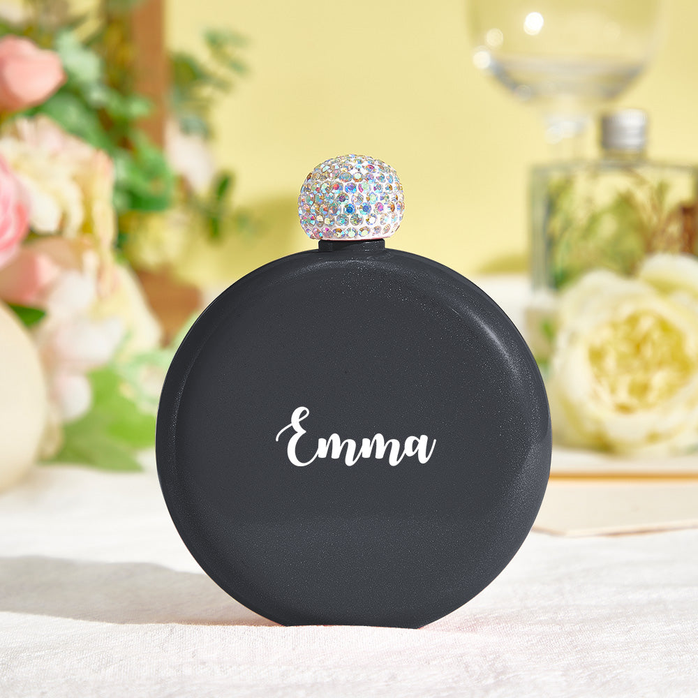 Ces flacons ronds personnalisés avec couvercles en strass peuvent être gravés avec le nom de votre contribution. Convient comme cadeaux de demoiselle d'honneur lors des fêtes de mariage, également comme cadeaux parfaits pour les anniversaires, Noël, la fête des mères et les anniversaires. Il est idéal pour offrir à une épouse, une fille, une grand-mère, une meilleure amie, une collègue ou toute autre femme de votre vie. Cette délicate flasque en acier inoxydable sera sûrement un succès auprès des femmes.