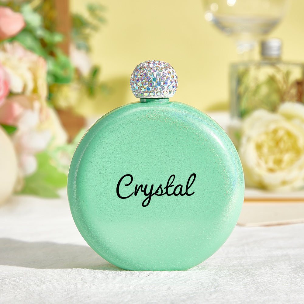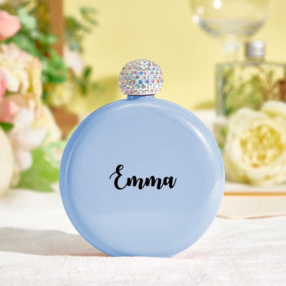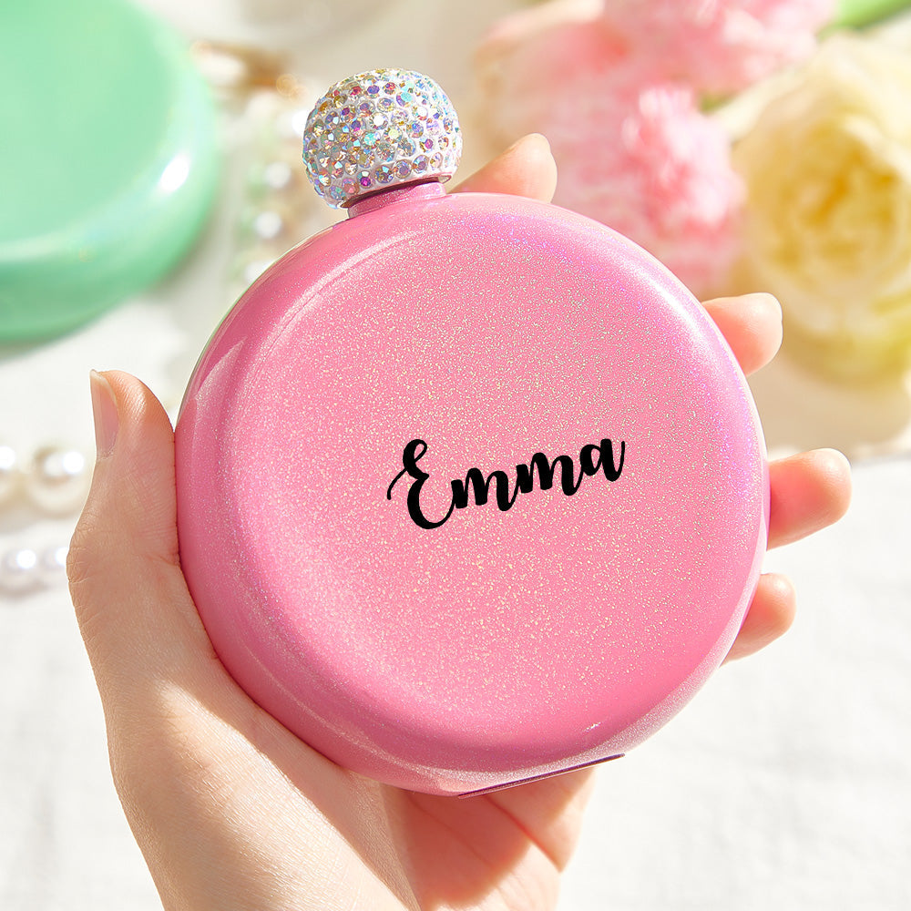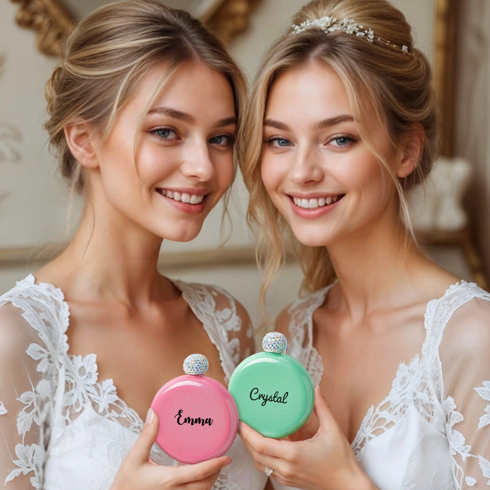 Ces flacons ronds personnalisés avec couvercles en strass peuvent être gravés avec le nom de votre contribution. Convient comme cadeaux de demoiselle d'honneur lors des fêtes de mariage, également comme cadeaux parfaits pour les anniversaires, Noël, la fête des mères et les anniversaires. Il est idéal pour offrir à une épouse, une fille, une grand-mère, une meilleure amie, une collègue ou toute autre femme de votre vie. Cette délicate flasque en acier inoxydable sera sûrement un succès auprès des femmes.