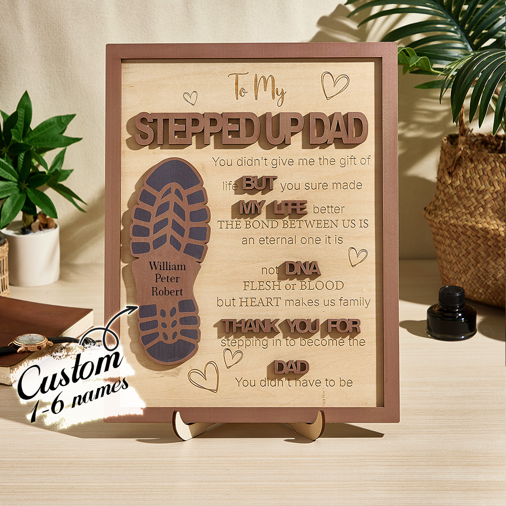 Panneau En Bois Personnalisé Stepped Up Dad Panneau D'empreinte De Papa Cadeau Pour La Fête Des Pères