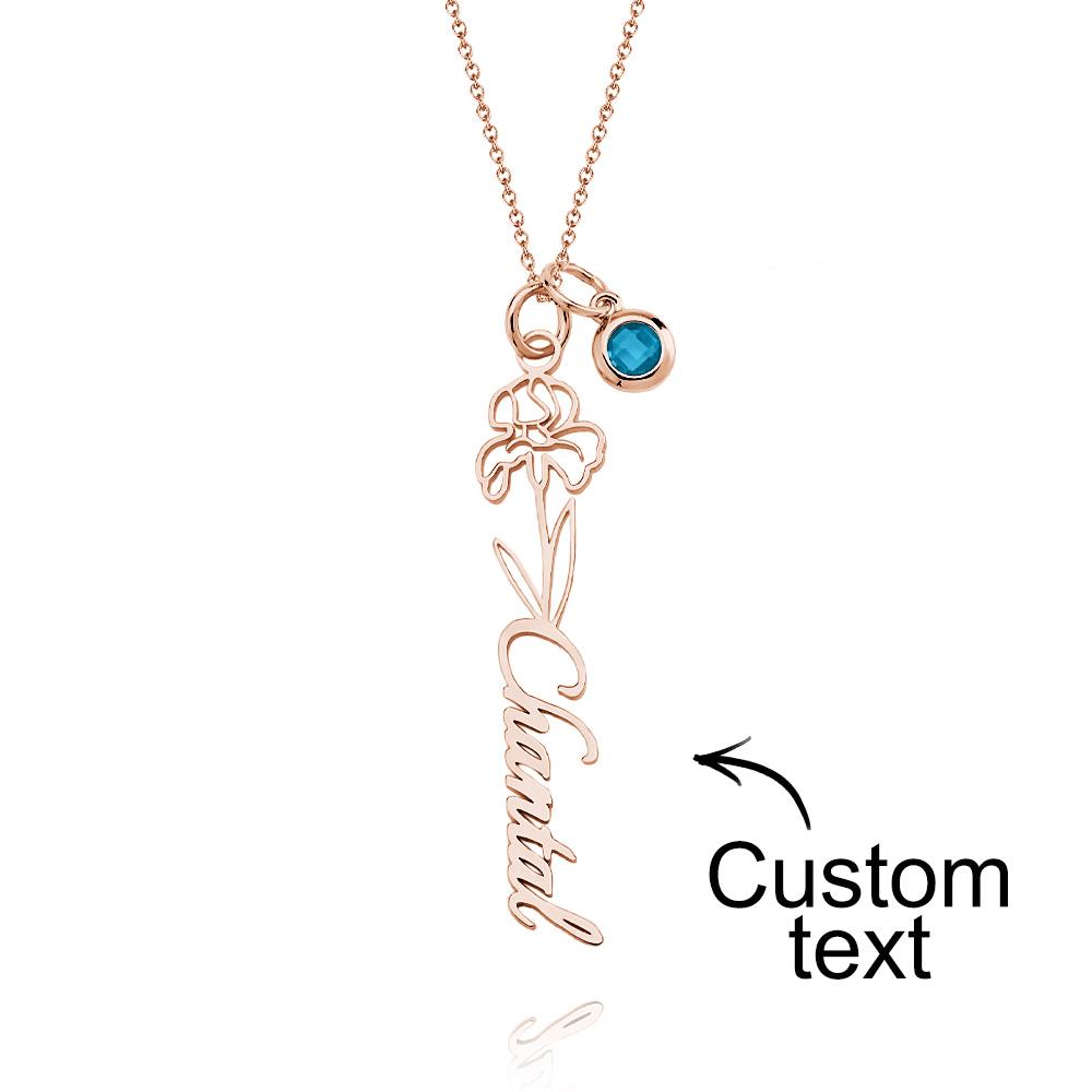Collier De Fleurs De Naissance Avec Texte Personnalisé, Cadeau Personnalisé Avec Pierre De Naissance Pour Maman