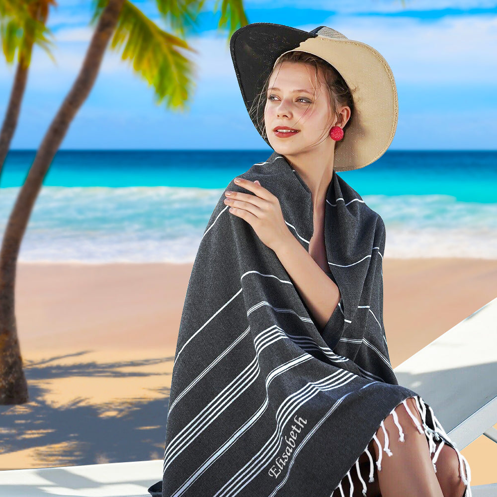 Ces serviettes de plage turques sont le must have ! Idéal pour la plage ou si vous voulez ajouter une touche de couleur à n'importe lequel de vos styles de plage. Vous pouvez personnaliser le nom dessus, en plus, il est parfait pour les enterrements de vie de jeune fille et tout type de célébrations. Un cadeau idéal pour votre partenaire, vos meilleurs amis, votre demoiselle d'honneur et plus encore.