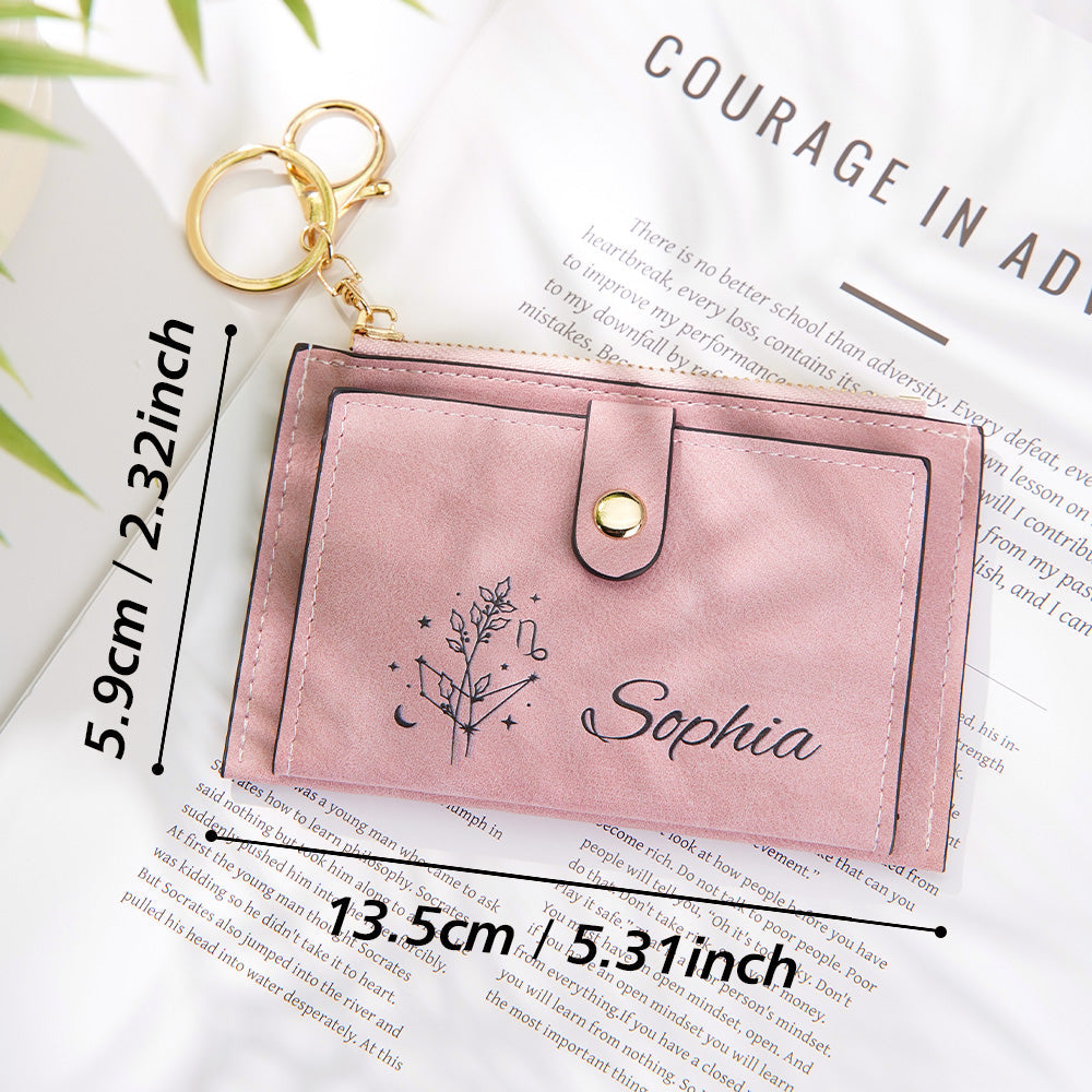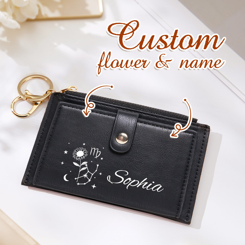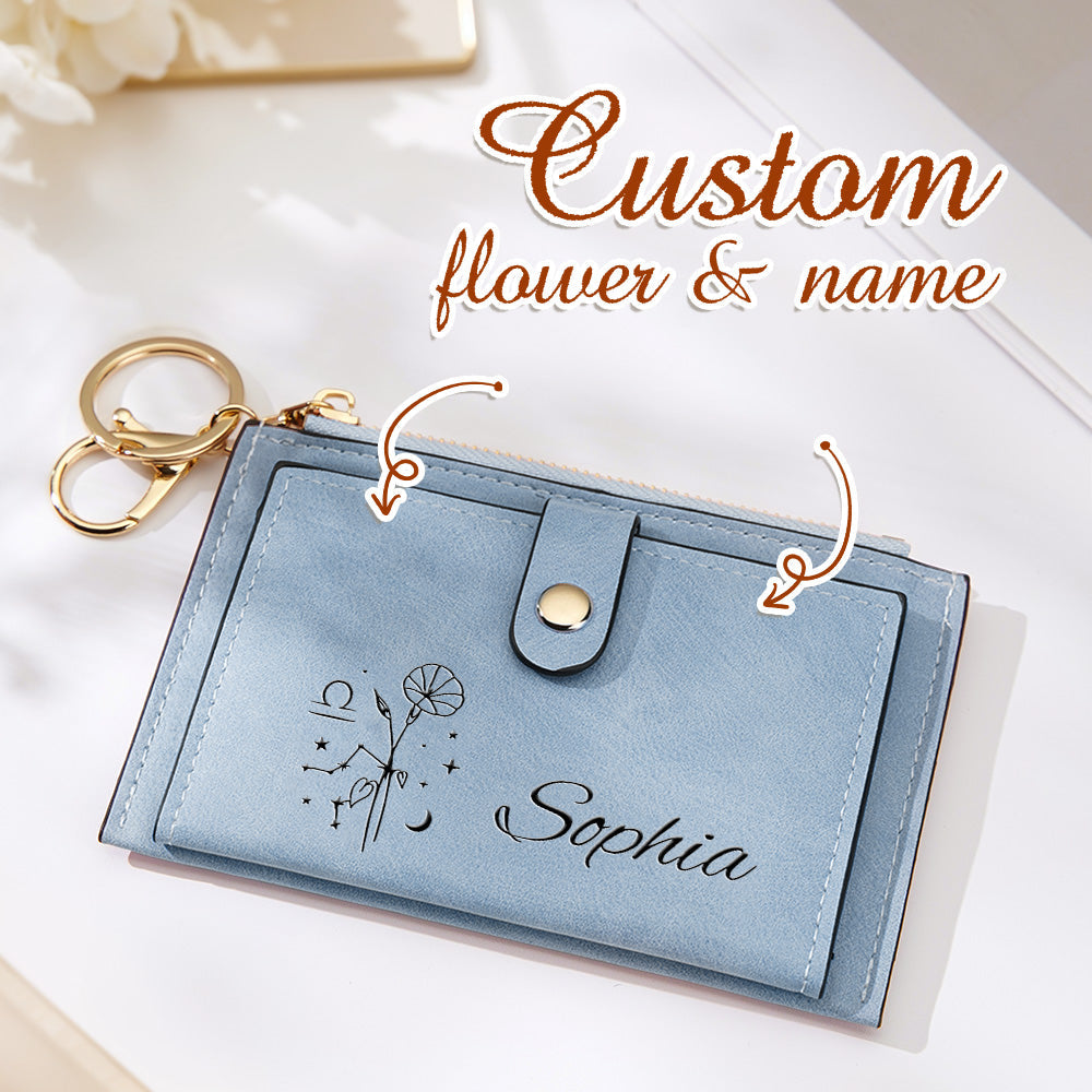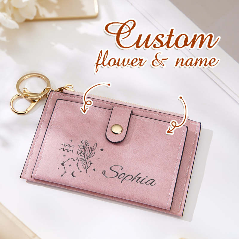 Portefeuille En Cuir Personnalisé Avec Fleur De Naissance Du Zodiaque, Cadeau D'anniversaire Pour Elle