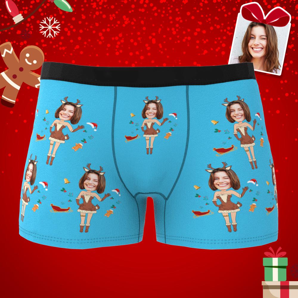 Photo personnalisée Boxer Noël wapiti visage sous-vêtements hommes sous-vêtements Couple cadeaux cadeau de Noël vue AR