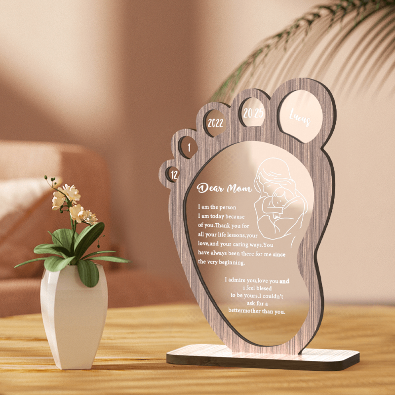 Plaque Personnalisée Décorative En Forme de Pied Plaque en Bois Cadeau de Fête des Mères pour Maman