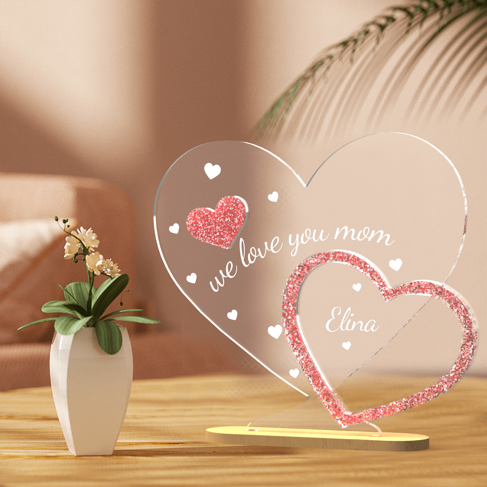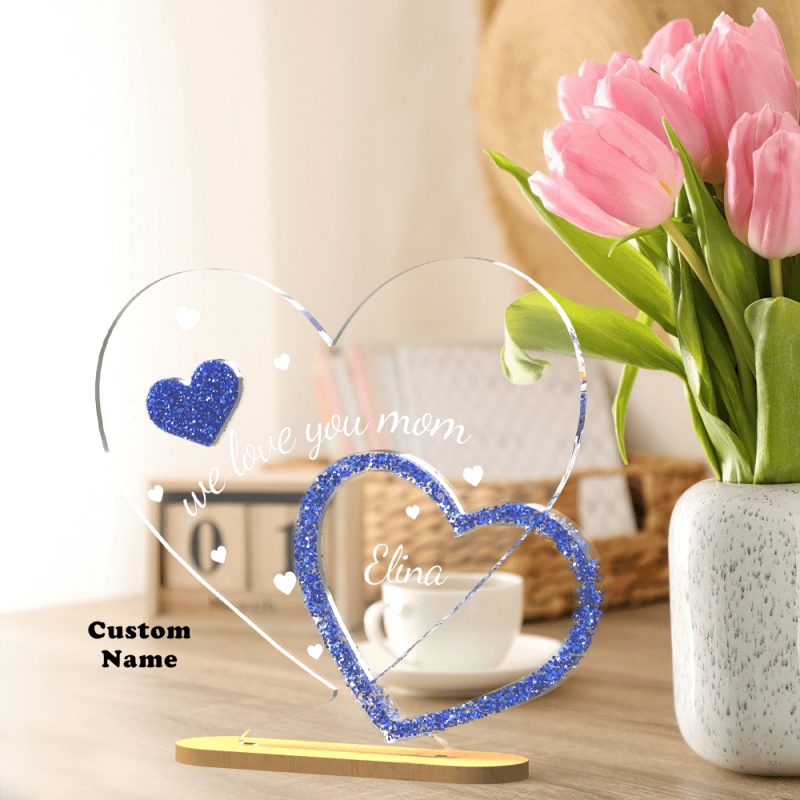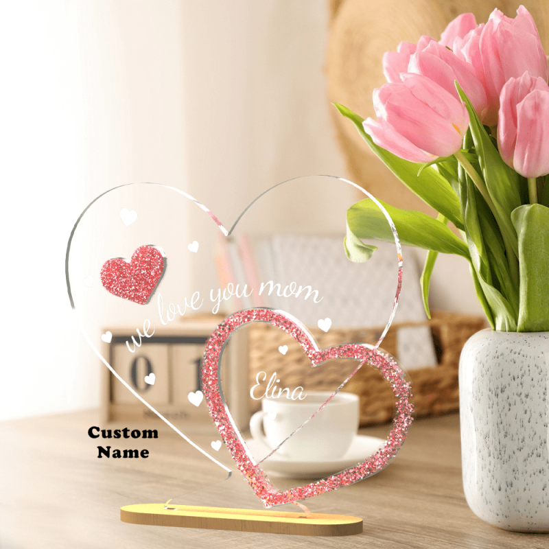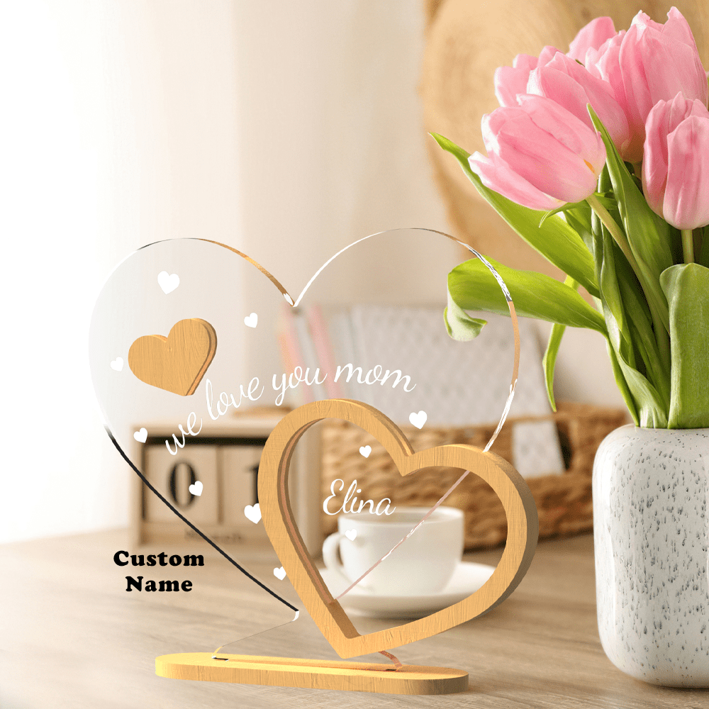 Plaque Personnalisée En Forme de Coeur Décoration de Table Personnalisée Cadeau Fête des Mères
