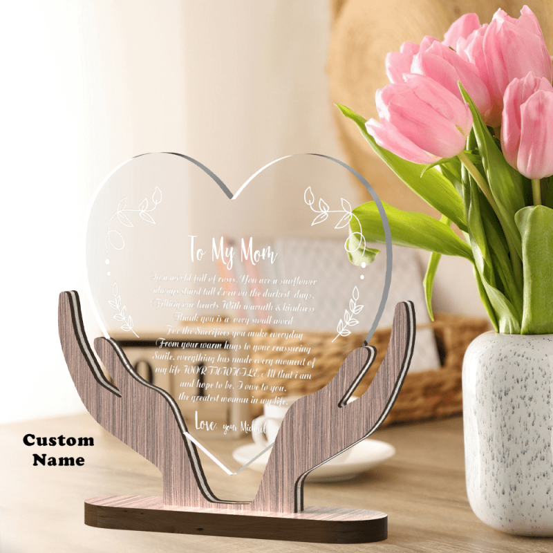 Plaque Plexiglas Personnalisée Pour Maman Plaque en Bois Personnalisée En Forme de Cœur Cadeau de La Fête des Mères