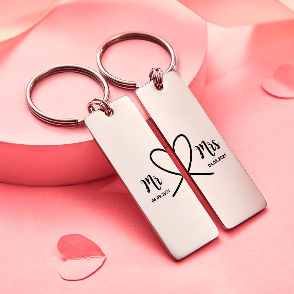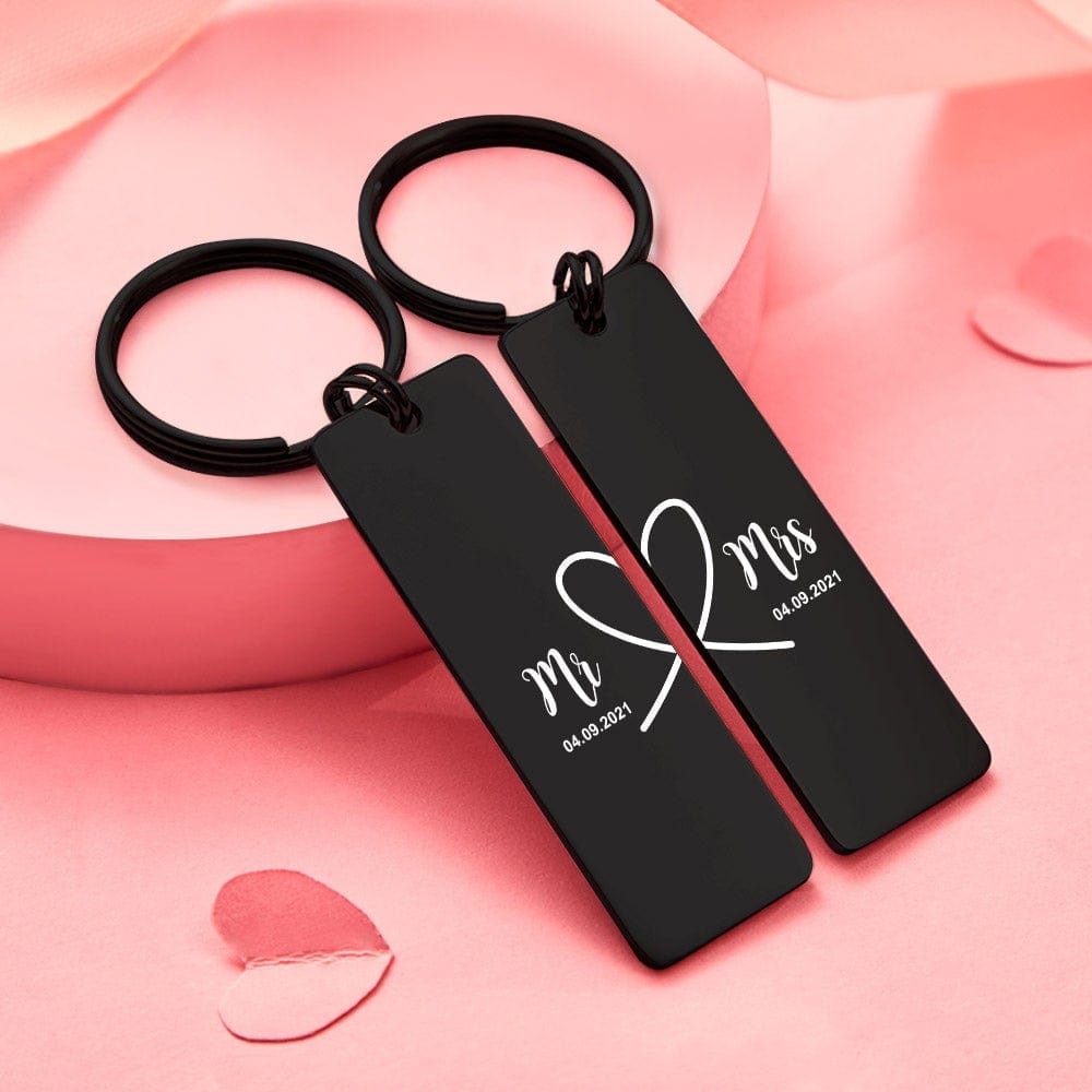 Porte-clés Coeur Pour Couples Avec Nom Cadeau Saint Valentin Pour Elle - 2 Pièces