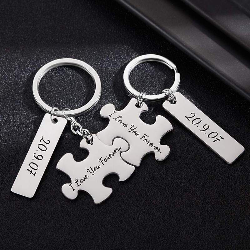 Porte-clés Gravé Bloc Personnalisé Puzzle Porte-clés Cadeaux Pour Couple