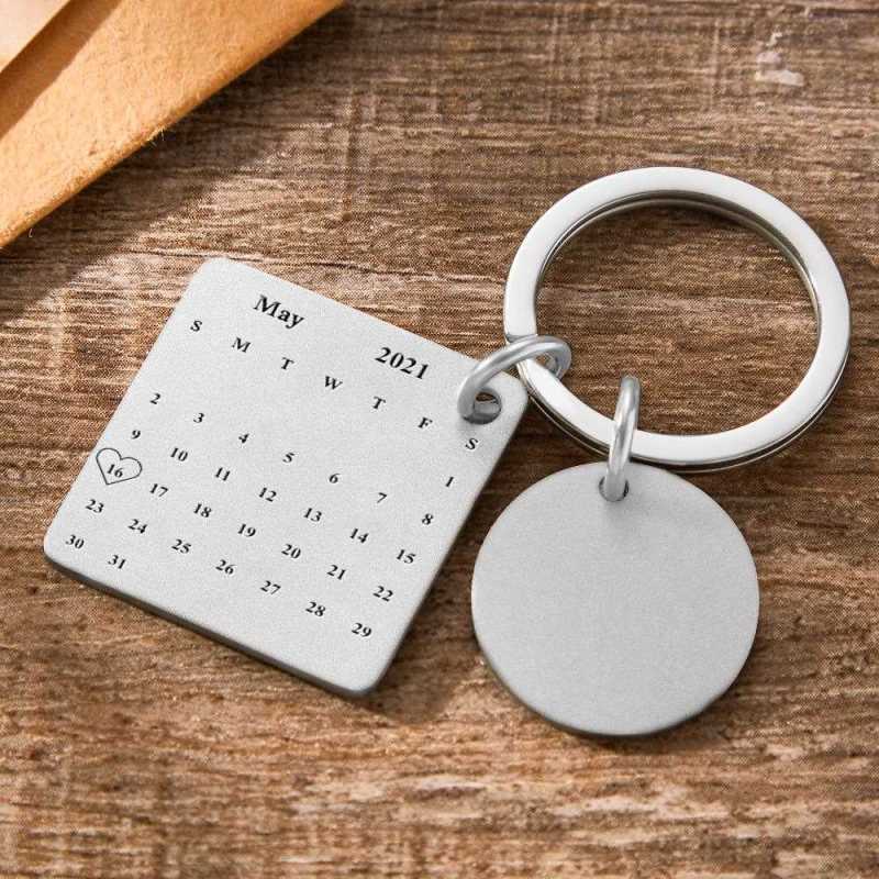 Porte-clés Gravé de Calendrier Personnalisé Photo Cadeaux Pour des Couples