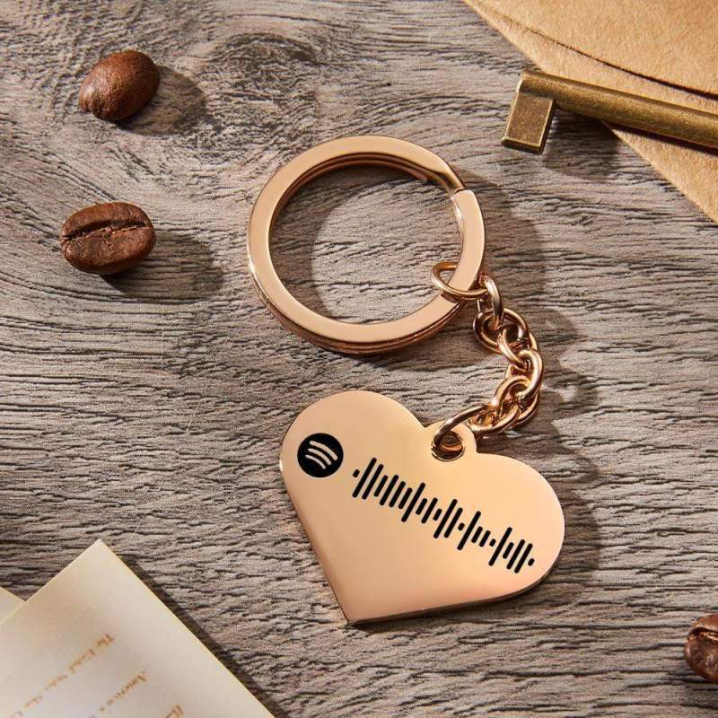 Porte-clés Personnalisé Spotify Code En Coeur Cadeaux Saint-Valentin Pour Elle - Or Rose