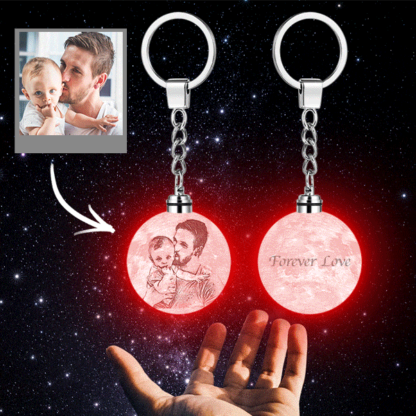 Porte-clés Photo Personnalisée 3D Imprimés de Lampe de Lune Colorée Pour Papa