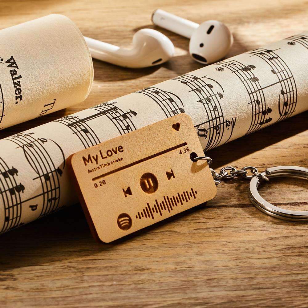 Porte-clés Spotify Personnalisé En Bois Cadeaux Fête des Mères Pour Maman