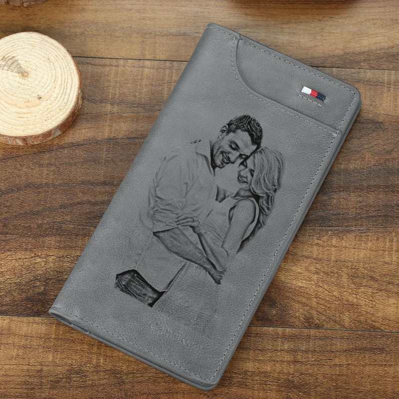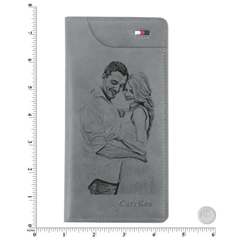 Portefeuille Personnalisé Gravé avec Photo Cadeau Fête de Pères pour Lui - Gris