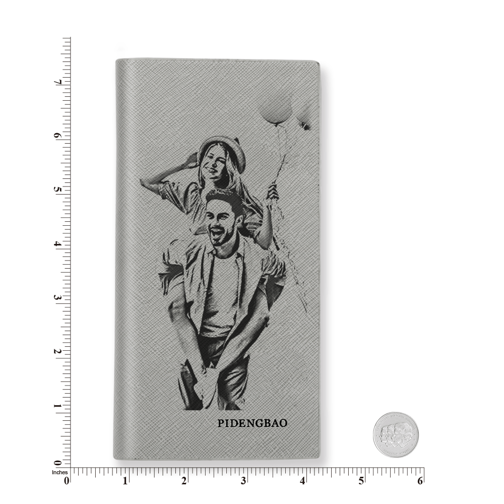 Portefeuille Personnalisé Gravé Cadeau d'anniversaire Pour Couple - Gris Impression Recto Verso