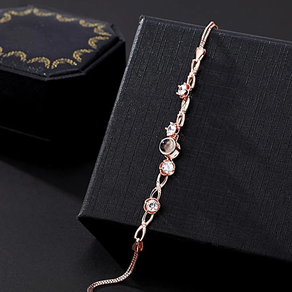 Ce bracelet de projection personnalisé gravé de votre photo préférée sera un accessoire parfait pour vous ou un cadeau significatif pour quelqu'un que vous aimez et la nouveauté surprendra certainement le destinataire de votre cadeau et tous ceux qui le verront. Vous serez impressionné par la façon dont le souvenir peut être conservé. Aucun autre bijou ne peut obtenir cet effet.