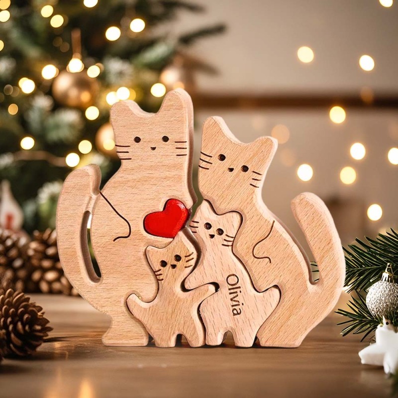 Puzzle De Noms Personnalisés En Bois Pour Famille De Chats, Cadeaux De Décoration Pour La Maison Cadeau de Noël
