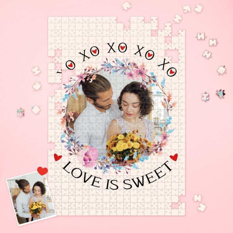 Puzzle Photo Personnalisé L'amour Est Doux Cadeau de Saint-Valentin Pour Couple