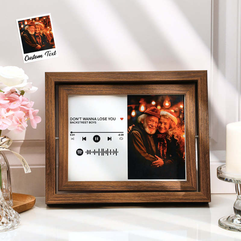 Cadre Rotatif Pour Photo Avec Code Spotify Scannable, Cadre Décoratif Flottant Personnalisé, Cadeaux Pour Couples