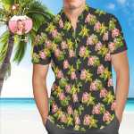 Cette chemise hawaïenne présente un imprimé, une fermeture boutonnée et des manches courtes.