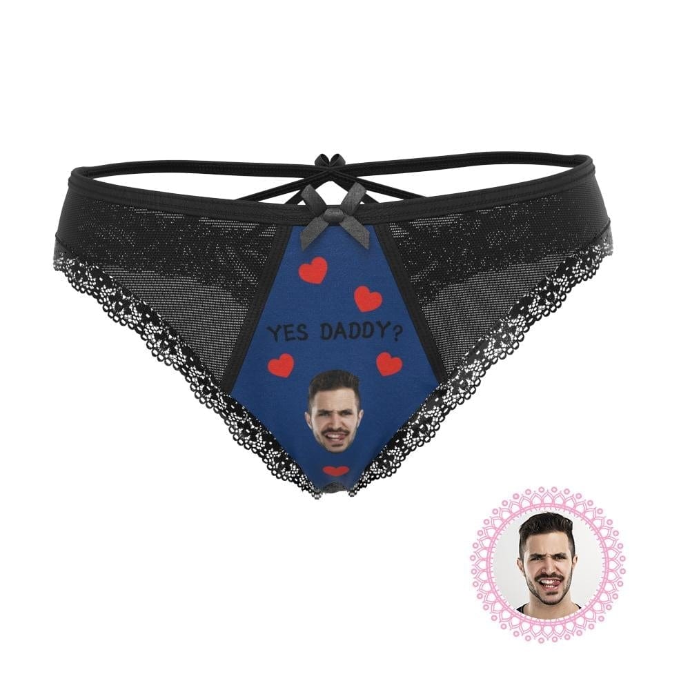 Strings en Dentelle Sexy Personnalisé Blanc et Bleu Cadeaux de Saint Valentin Pour Elle