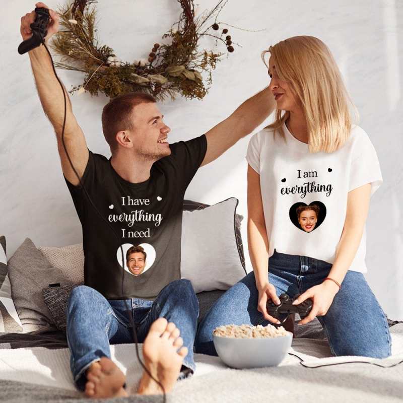 - Vous pouvez mettre à jour votre photo pour personnaliser le t-shirt de ce couple. Un essentiel mode cool et stylé, que vous aurez envie de porter tous les jours. Notre équipe de conception travaille dur pour obtenir une production parfaite. Un cadeau pour vous et votre valentine !