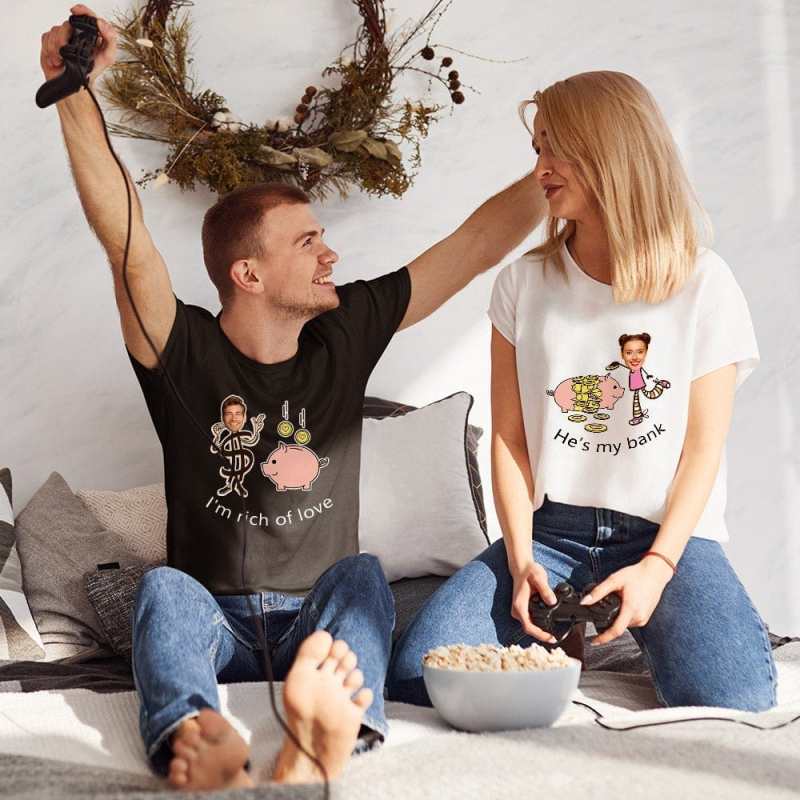 - Vous pouvez mettre à jour votre photo pour personnaliser le t-shirt de ce couple. Un essentiel mode cool et stylé, que vous aurez envie de porter tous les jours. Notre équipe de conception travaille dur pour obtenir une production parfaite. Un cadeau pour vous et votre valentine !