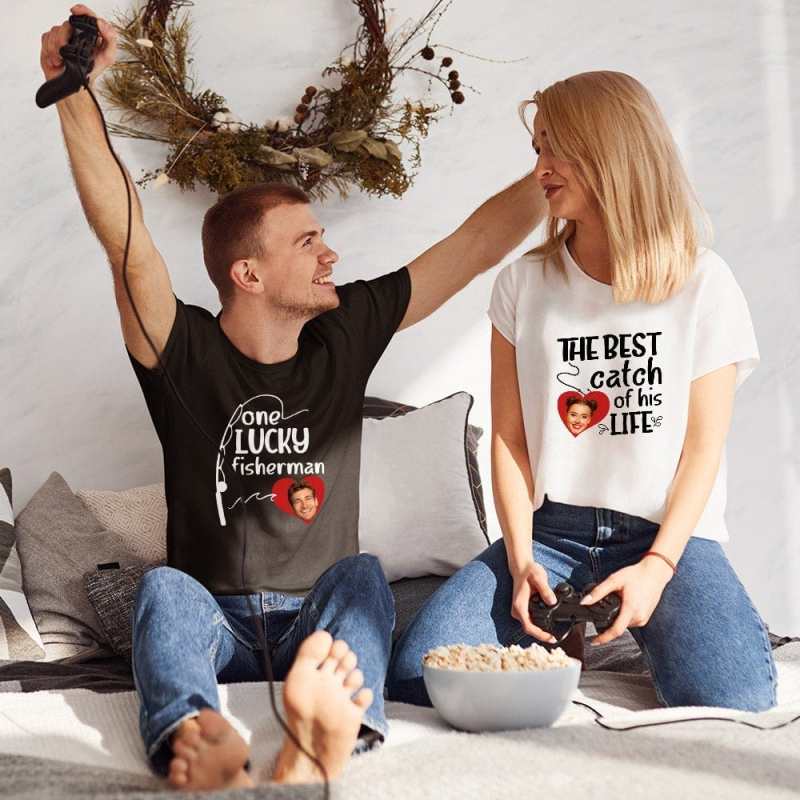 - Vous pouvez mettre à jour votre photo pour personnaliser le t-shirt de ce couple. Un essentiel mode cool et stylé, que vous aurez envie de porter tous les jours. Notre équipe de conception travaille dur pour obtenir une production parfaite. Un cadeau pour vous et votre valentine !