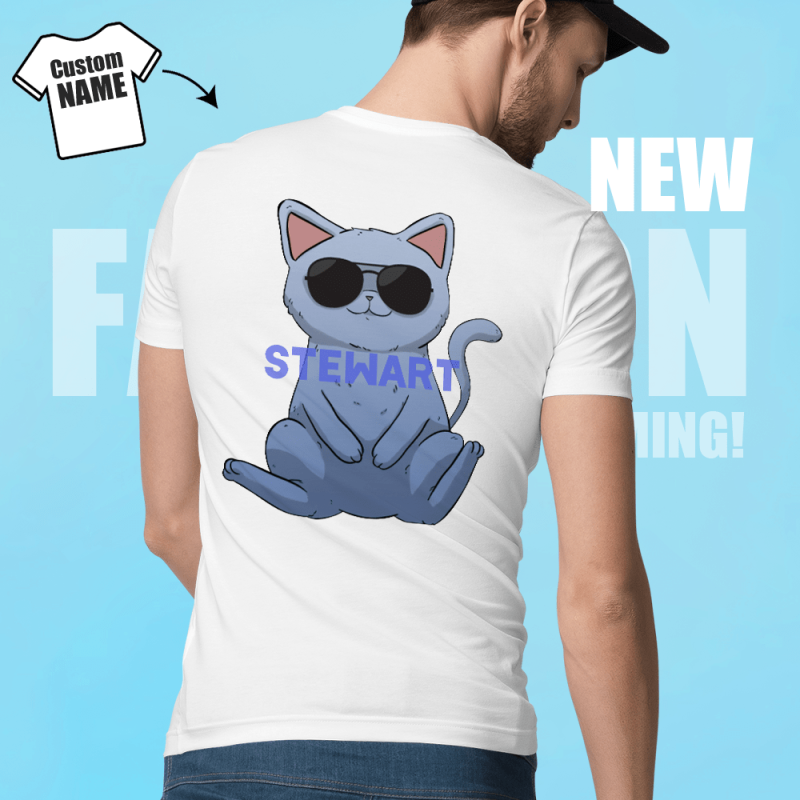 Tee-Shirt Personnalisé Avec Nom Impression de Bande Dessinée Lunettes de soleil et Chat Cadeaux de Famille