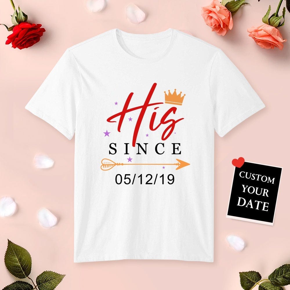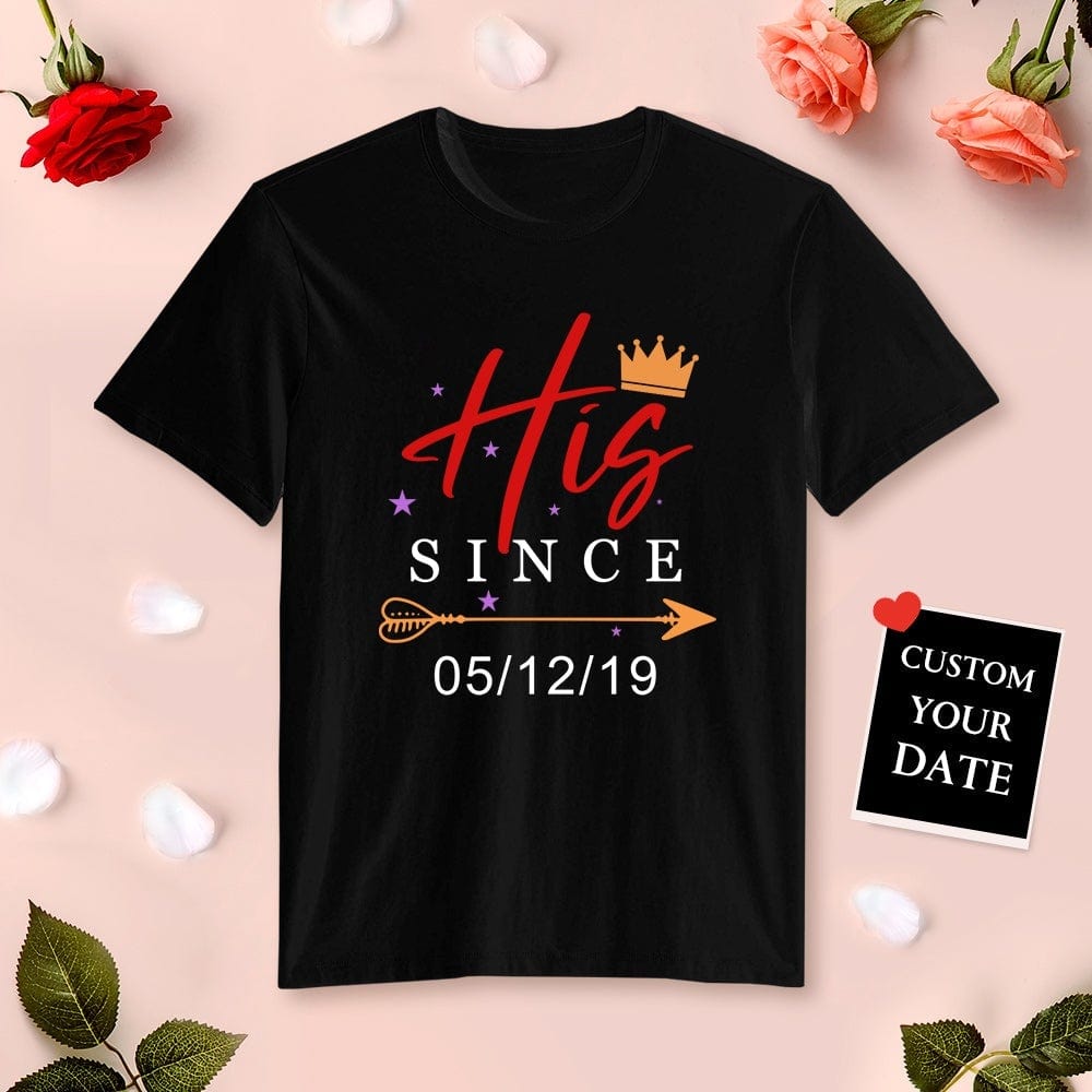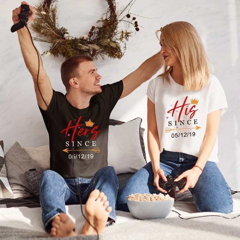 - Vous pouvez saisir la date pour personnaliser le t-shirt de ce couple. Un essentiel mode cool et stylé, que vous aurez envie de porter tous les jours. Notre équipe de conception travaille dur pour obtenir une production parfaite. Un cadeau pour vous et votre valentine !
