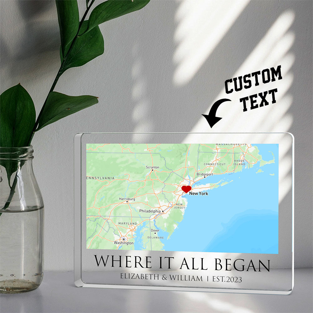Où Tout A Commencé - Carte Personnalisée En Forme De Rectangle Plaque Acrylique Texte Personnalisé Décoration De La Maison Cadeau Pour Cadeau D'anniversaire De Couple